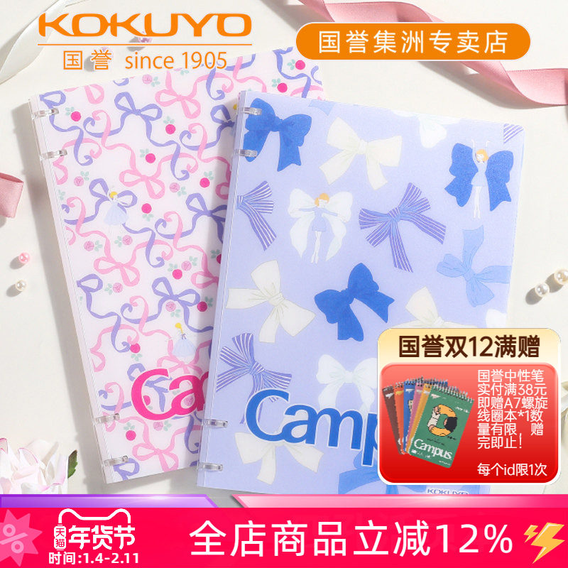 📚 日本kokuyo国誉加藤木蝴蝶结四孔活页本B5可拆卸轻薄大容量学生用活页夹笔记本子不易硌手可换替芯横线作业本