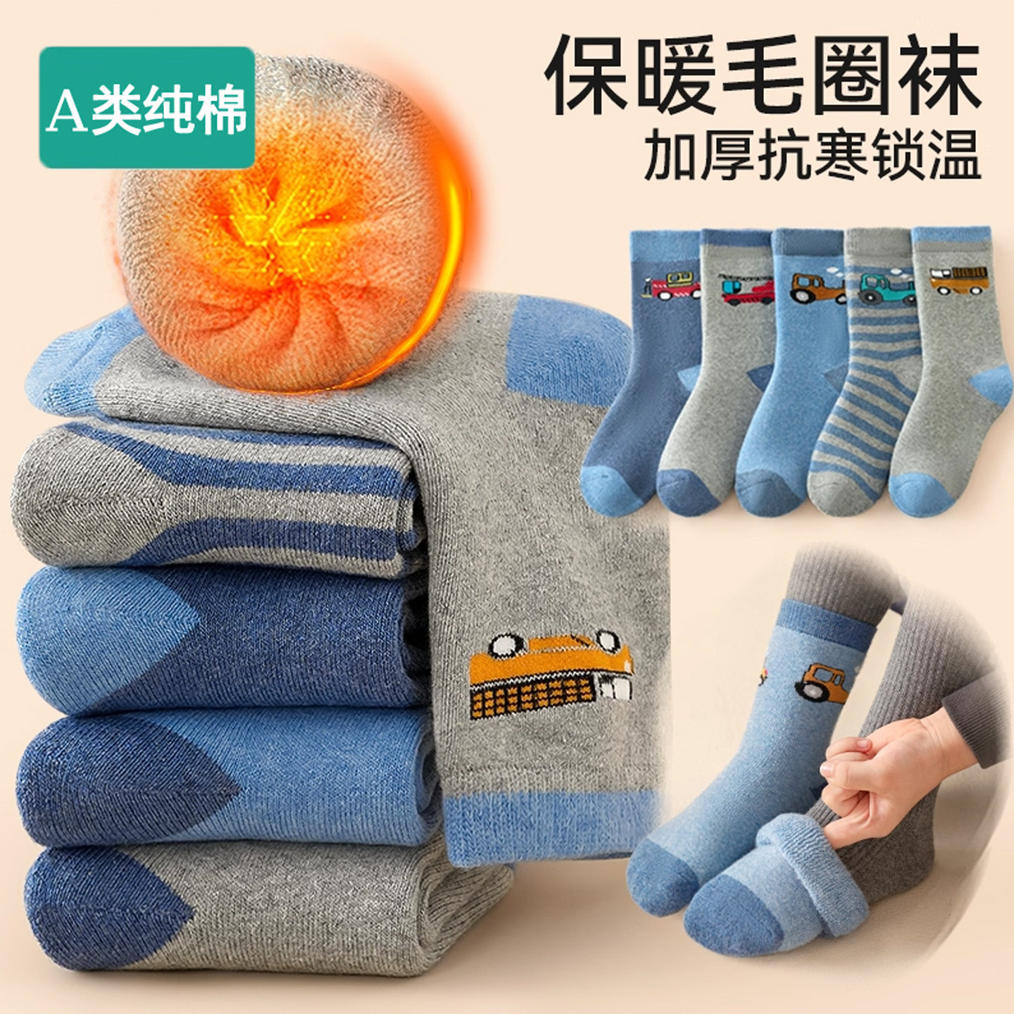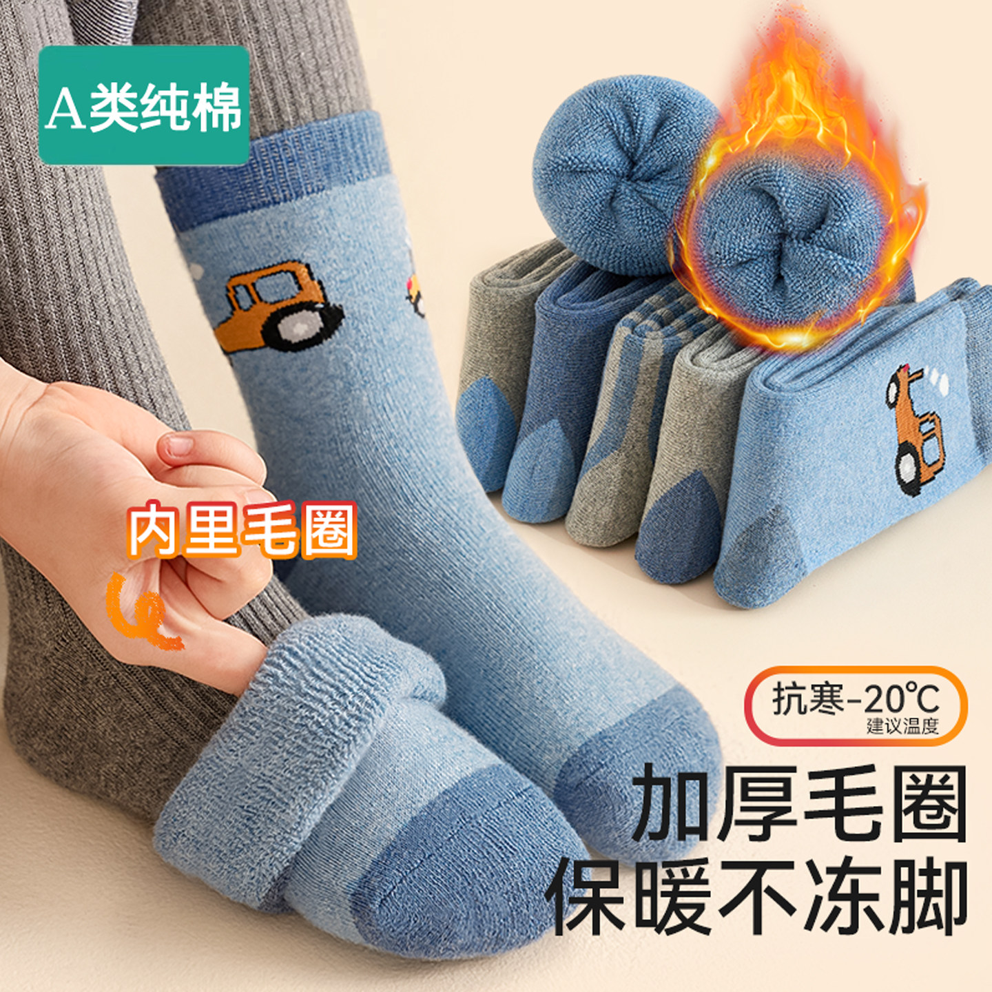 📚 全棉儿童袜子秋冬加绒加厚纯棉毛圈冬季宝宝男童中筒保暖棉袜冬天