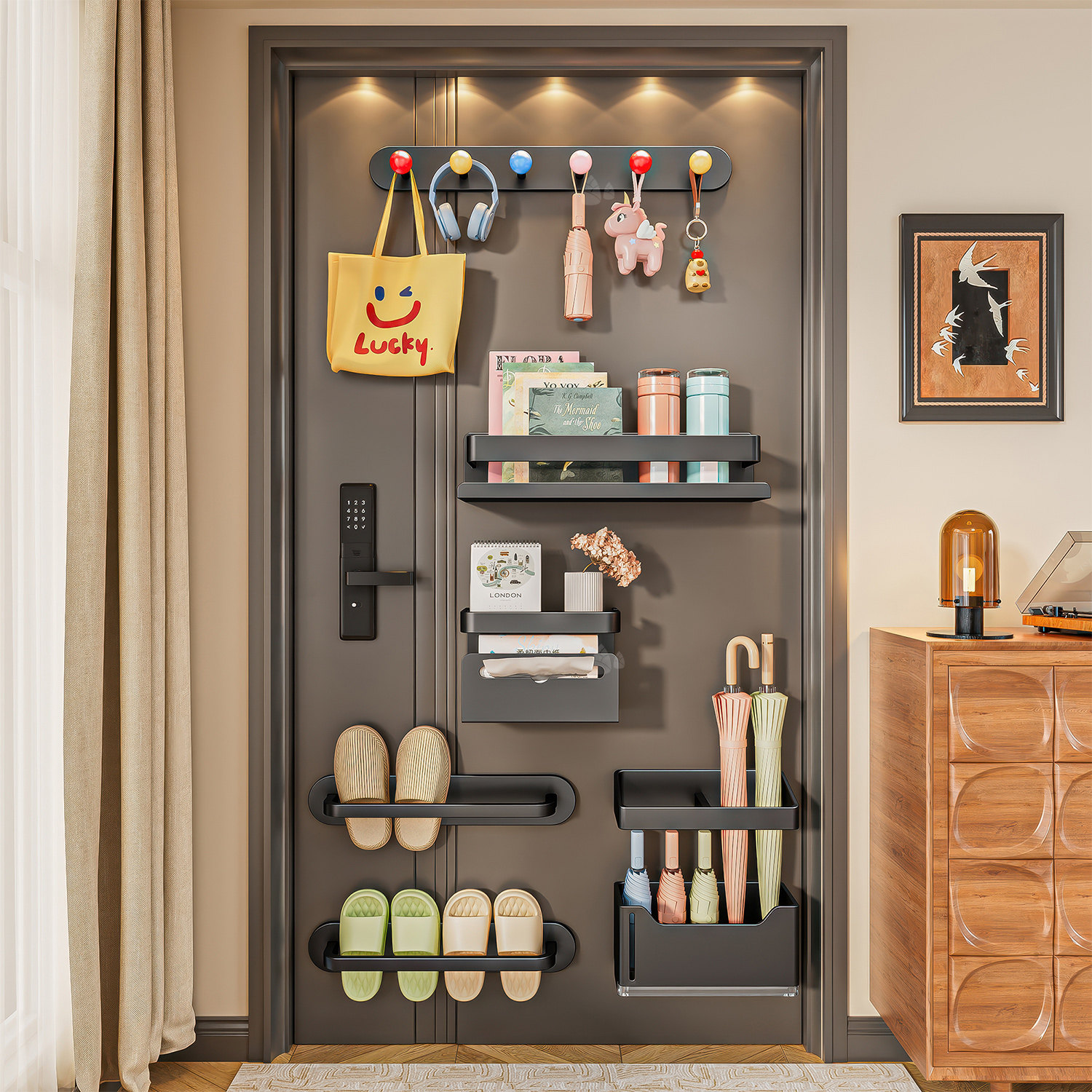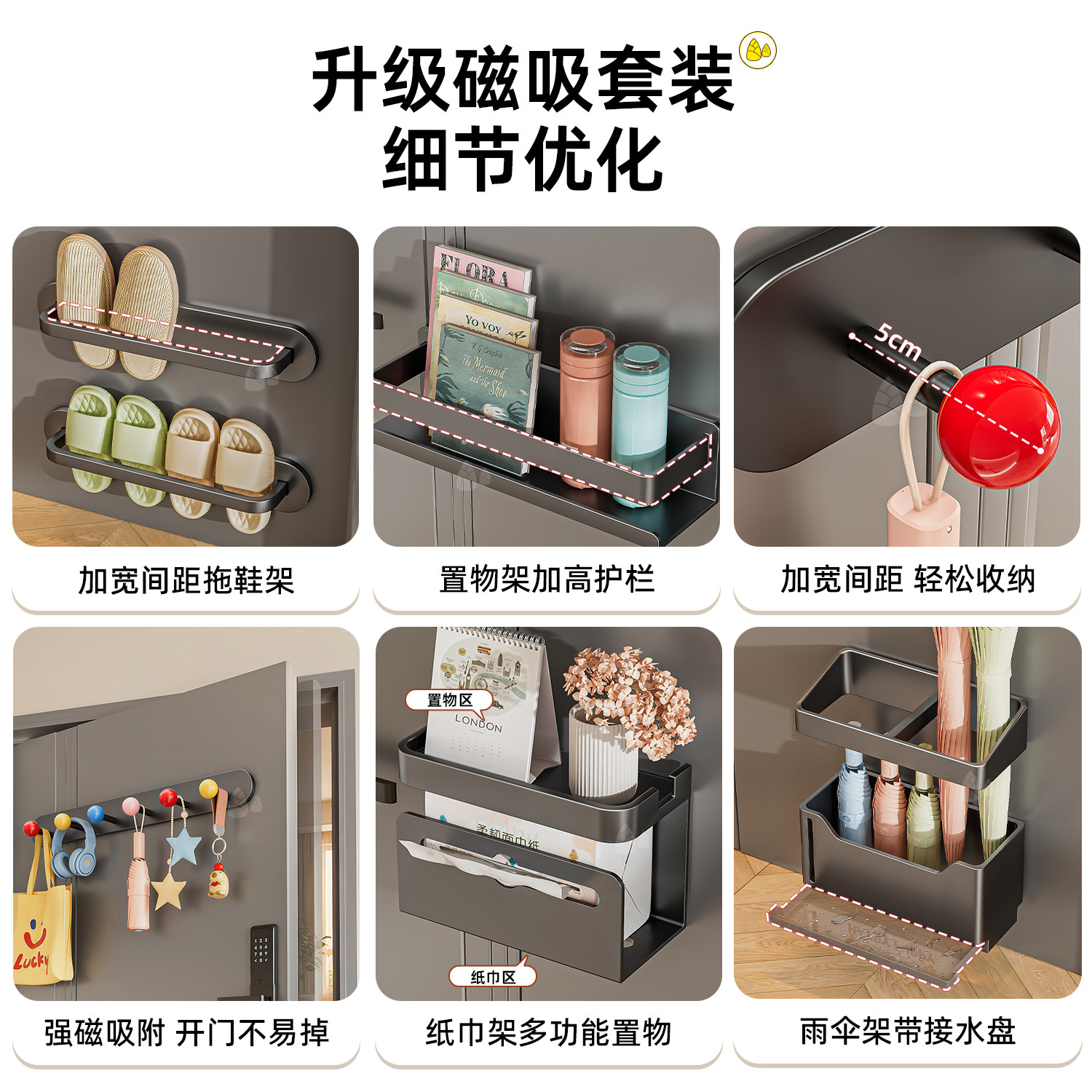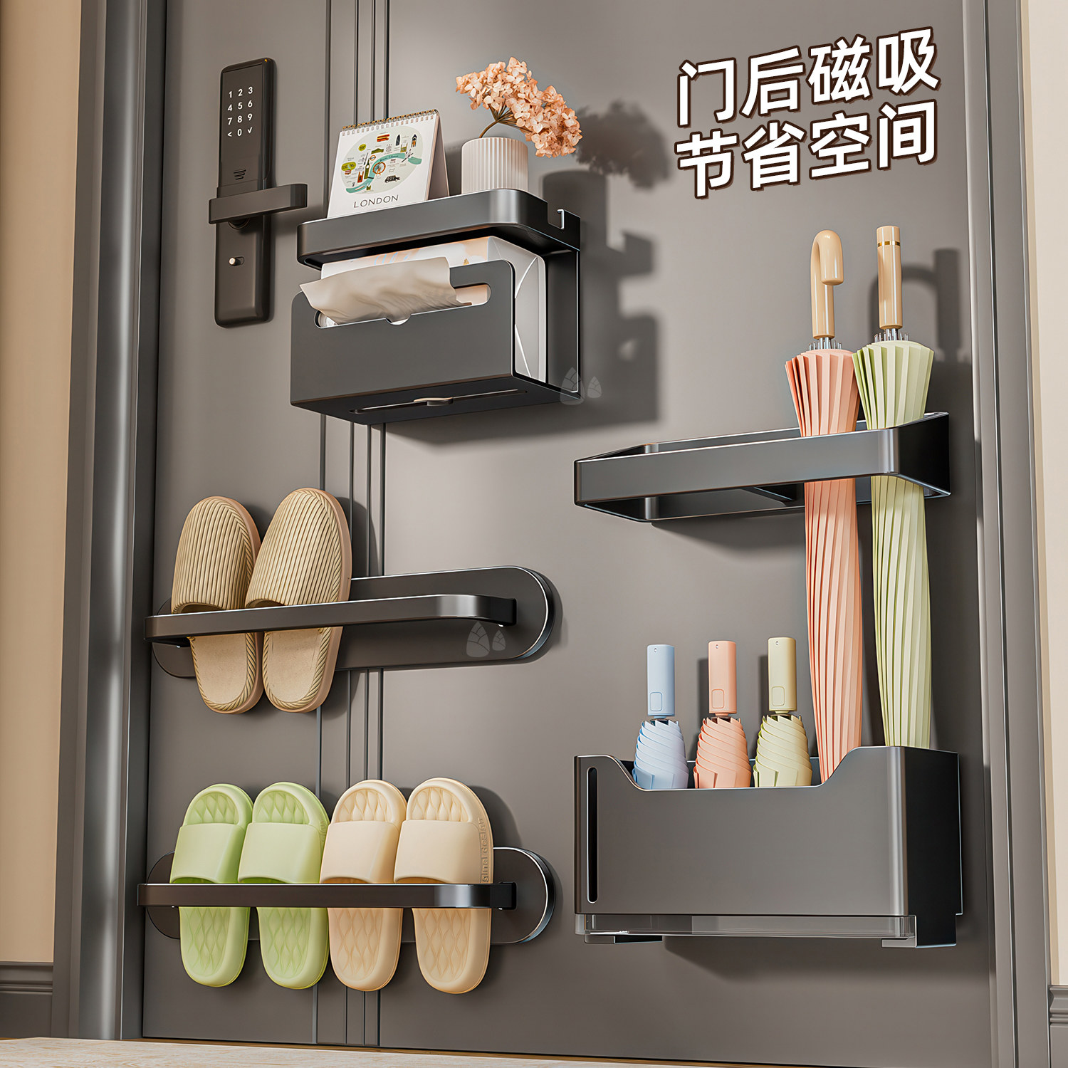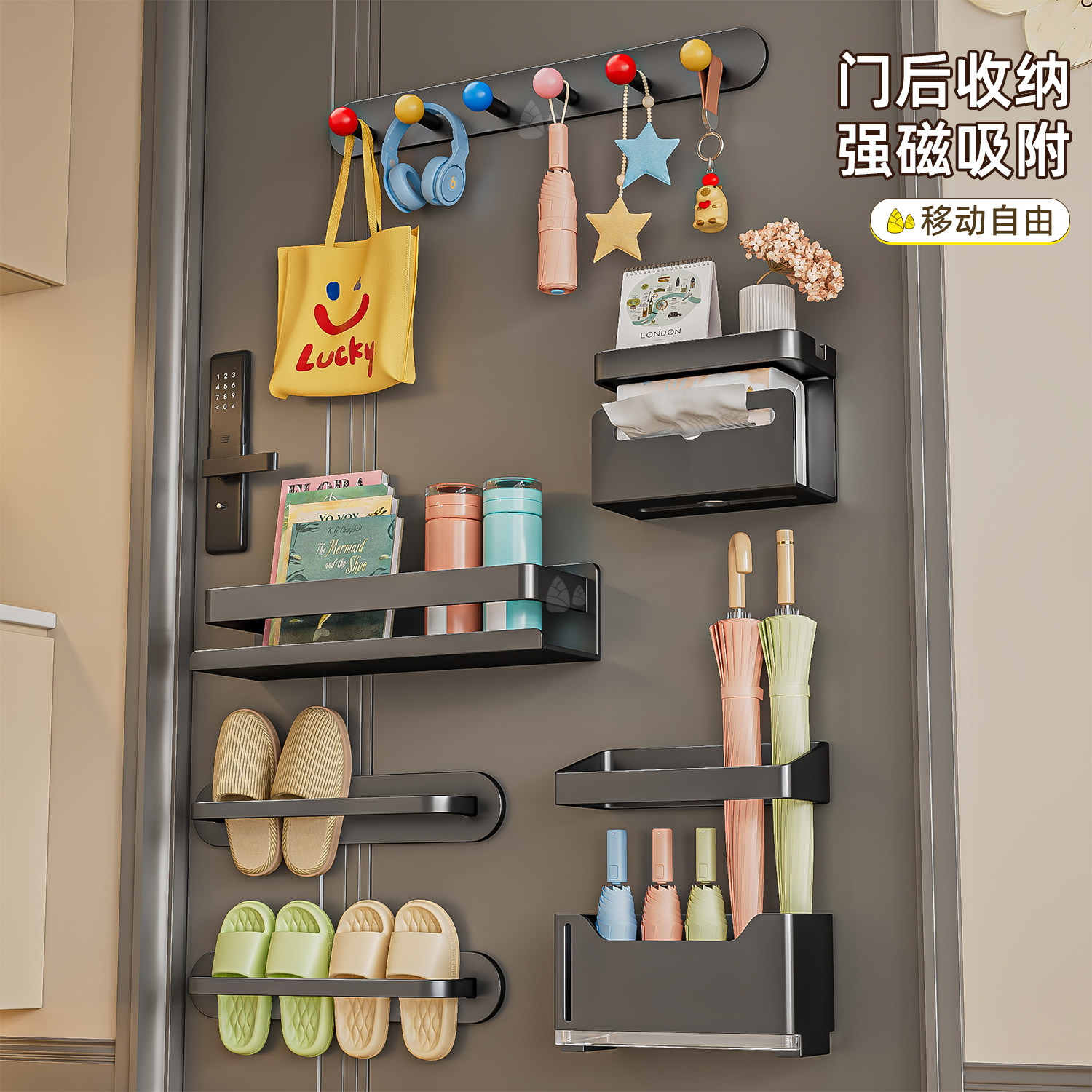 📚 磁吸置物架壁挂入户门后玄关置物收纳钥匙挂钩拖鞋雨伞架磁铁套装