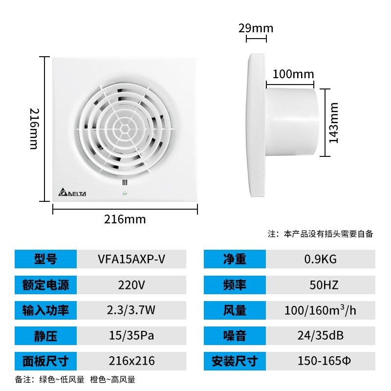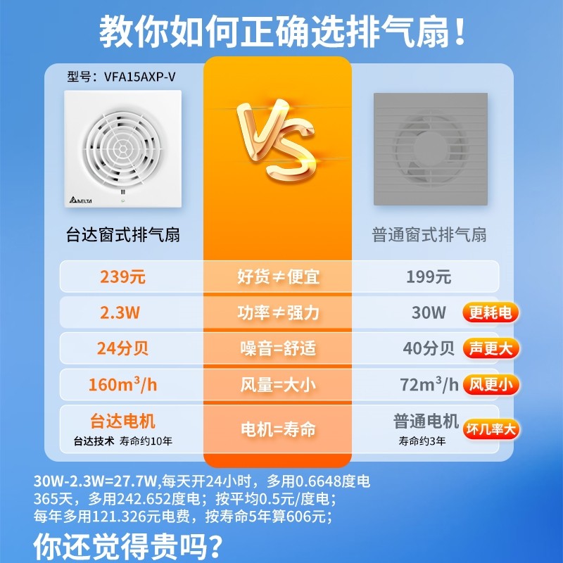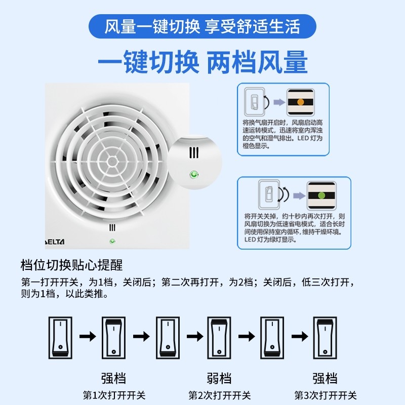 📚 台达排气扇卫生间排风扇家用强力音换气扇玻璃窗式两档可配遥控静