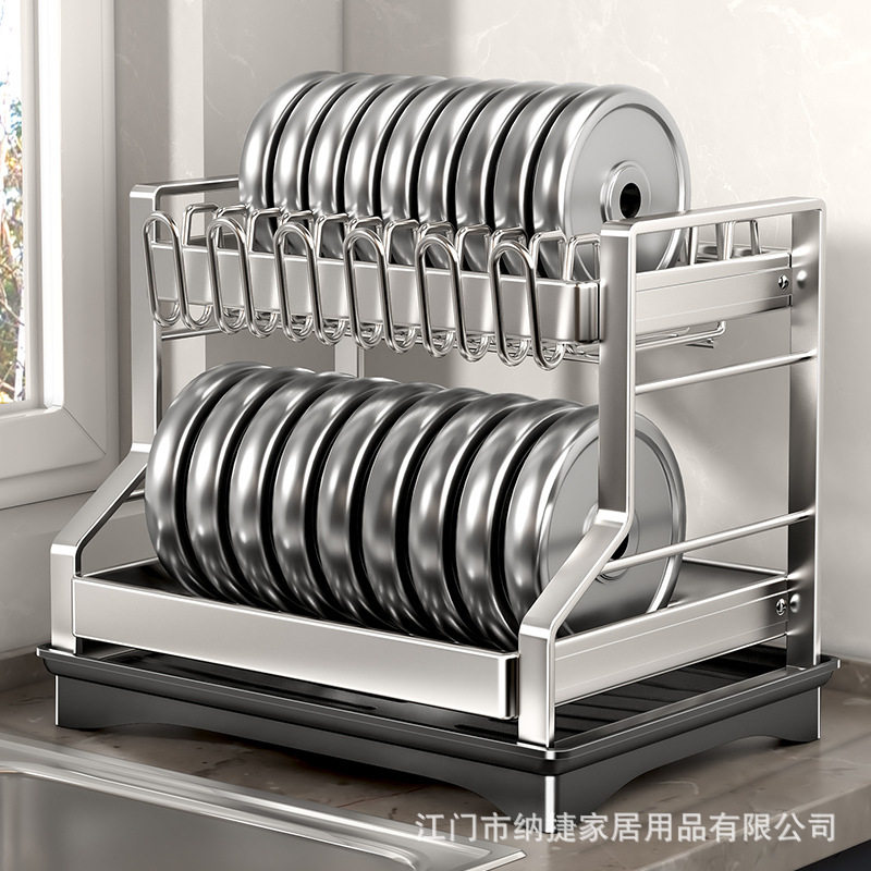 📚 Stainless steel double-layer bowl and dish rack, cup holder, kitchen storage rack, storage and drying knife and chopsti