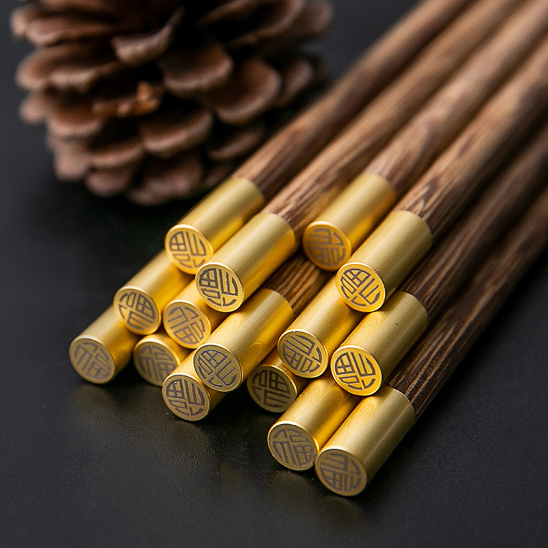 📚 品竹鸡翅木红檀木筷子无蜡无漆古风金属头实木筷酒店专用新款礼品