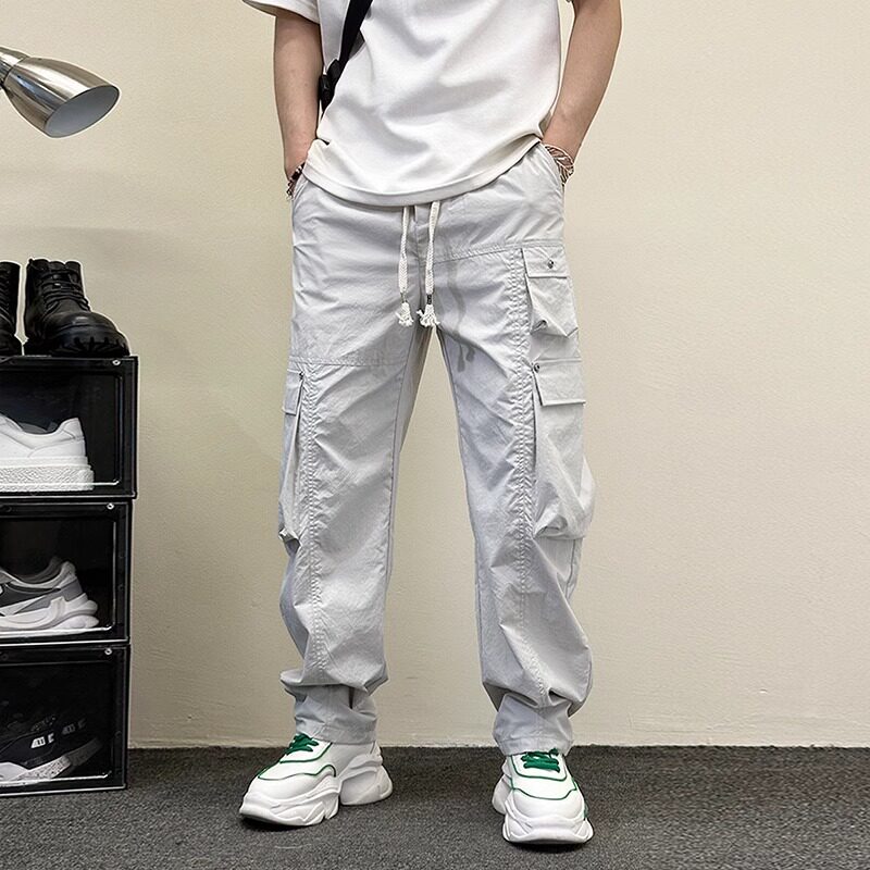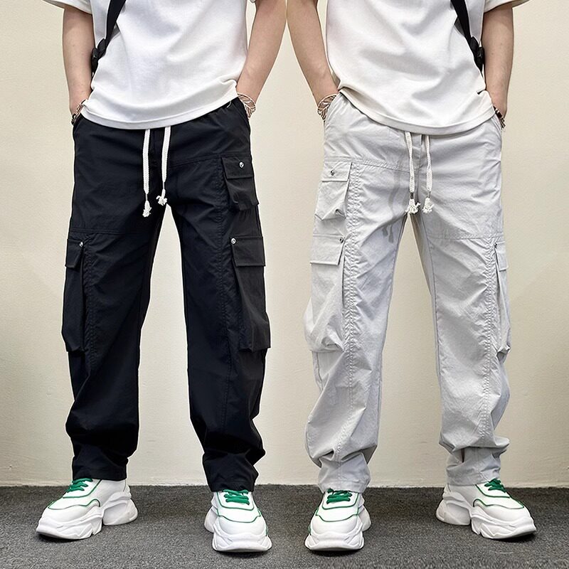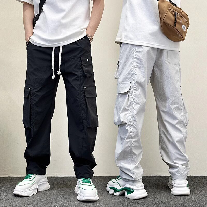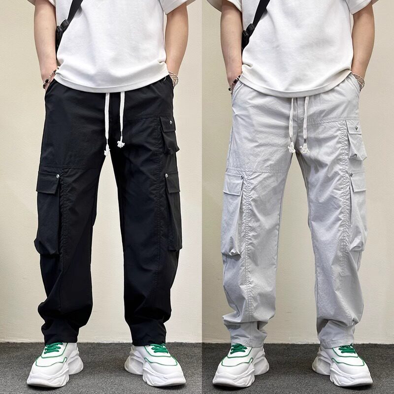 📚 大码300斤速干伞兵裤男夏多口袋工装裤弯刀直筒宽松阔腿休闲长裤2