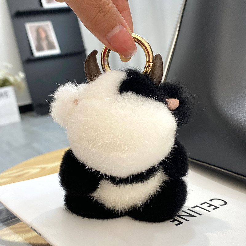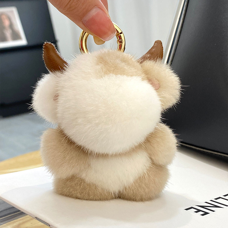 📚 真水貂毛绒公仔可爱小奶牛包包挂件网红汽车钥匙扣挂饰生日礼物女