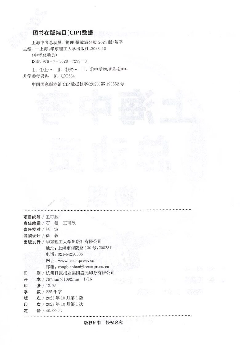 📚 2024版上海中考总动员 物理(挑战满分版) 同步上海教材中学生课外复习辅导试题测试训练资料 中考专题训练+压轴题训练