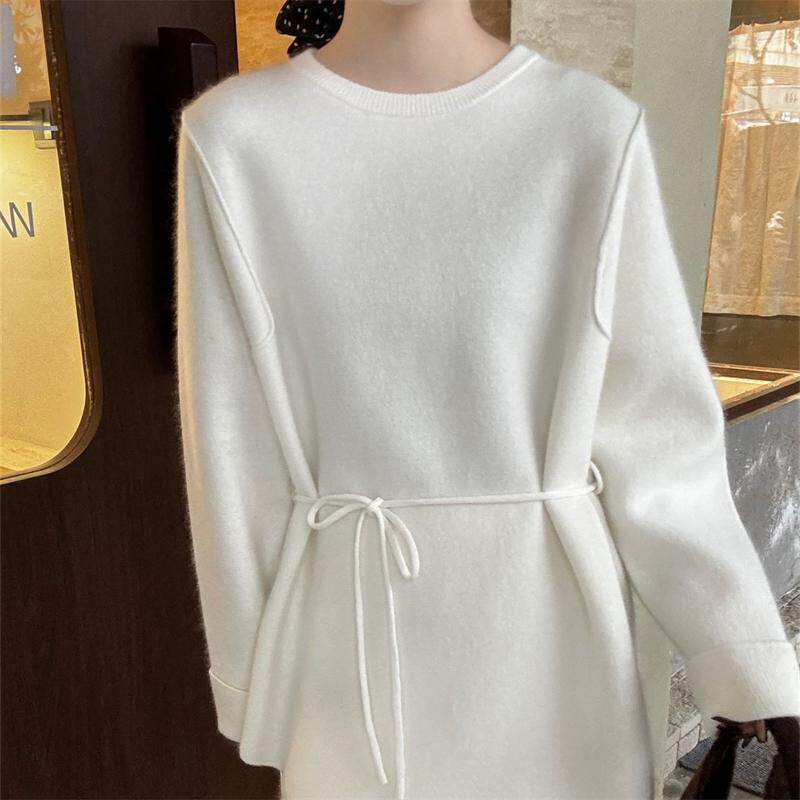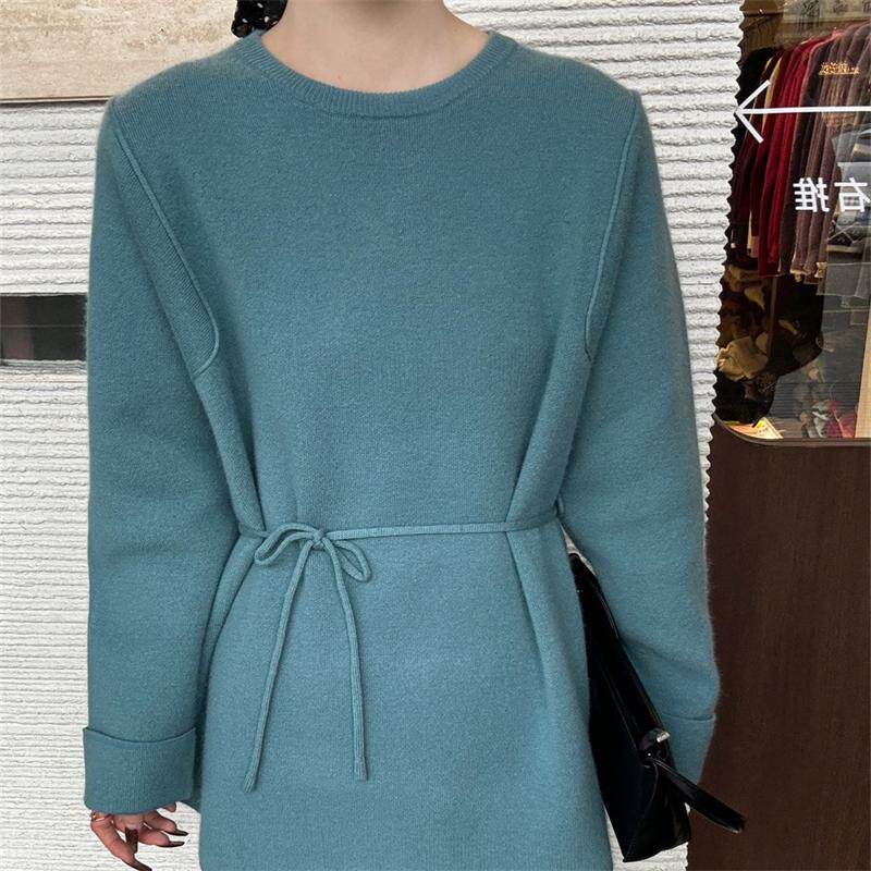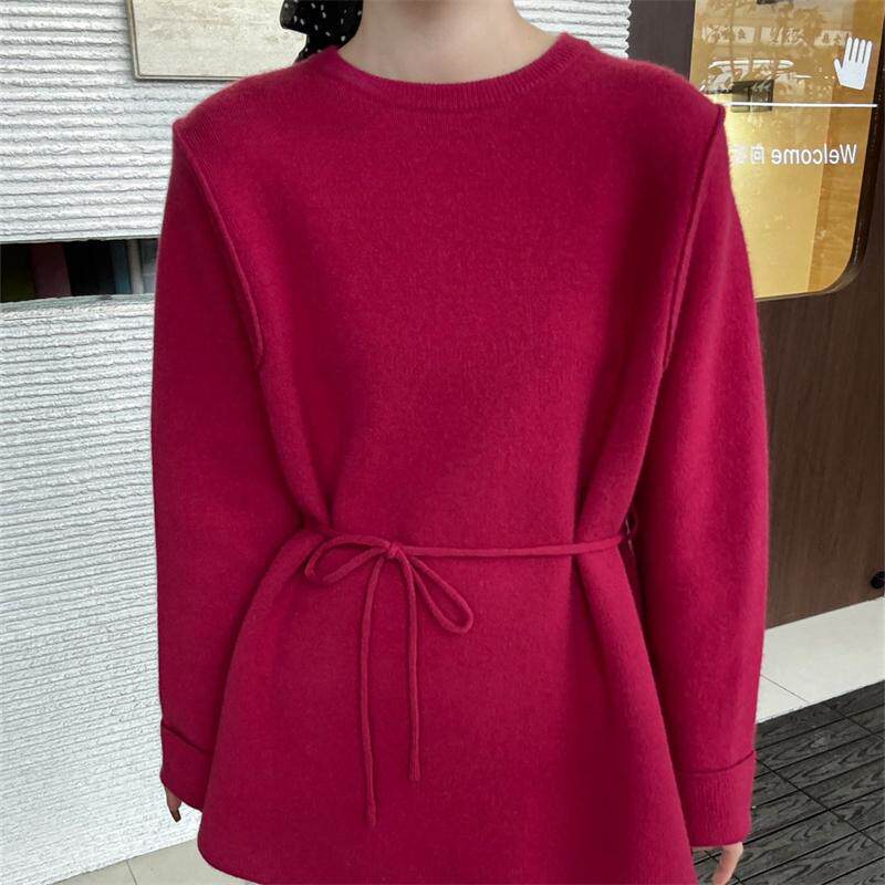 📚 韩版系带圆领羊毛针织衫女2025冬季新款时尚百搭显瘦毛衣打底衫潮