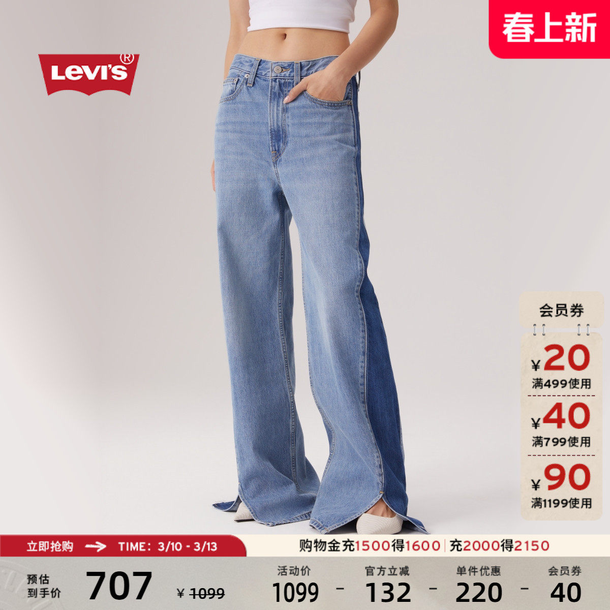 59¥ MF287 thMeUE8HZPt¥ https://m.tb.cn/h.i3zLAWG 【商场同款】Levi's李维斯25年秋冬女士Ribcage阔腿牛仔裤A6081 --------------------- 【原售价】1,099元 【现售价】1,099元。