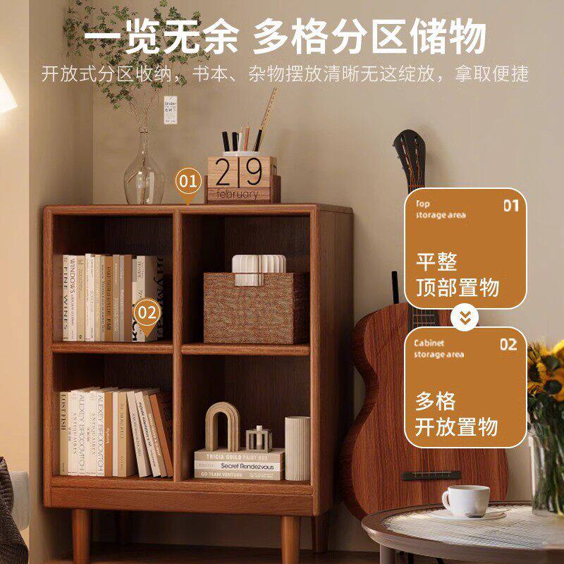📚 实木矮书柜胡桃木色置物柜美式小柜子客厅置物架唱片收纳柜储物柜