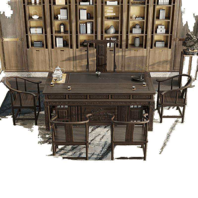 📚 新中式乌金宰相茶桌办公室实木茶几套装家用功夫古典茶台桌椅组合