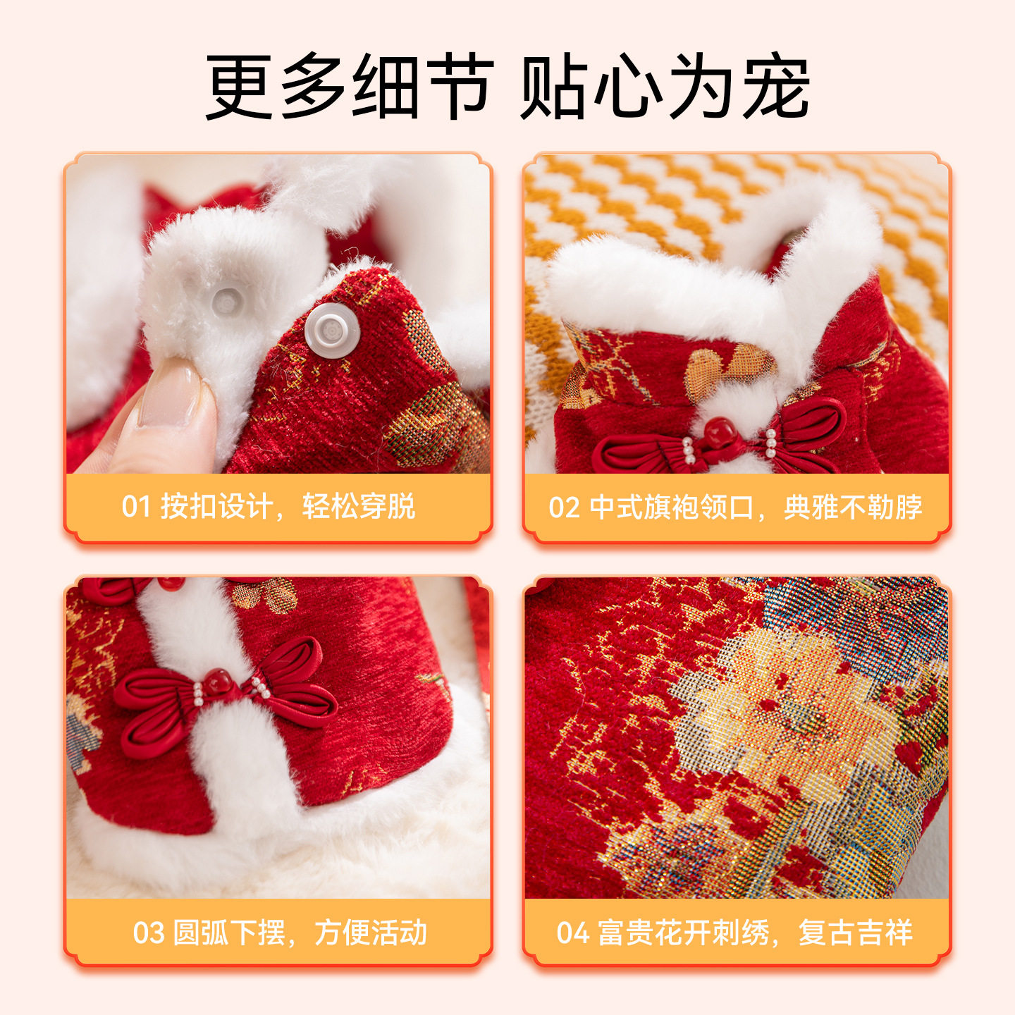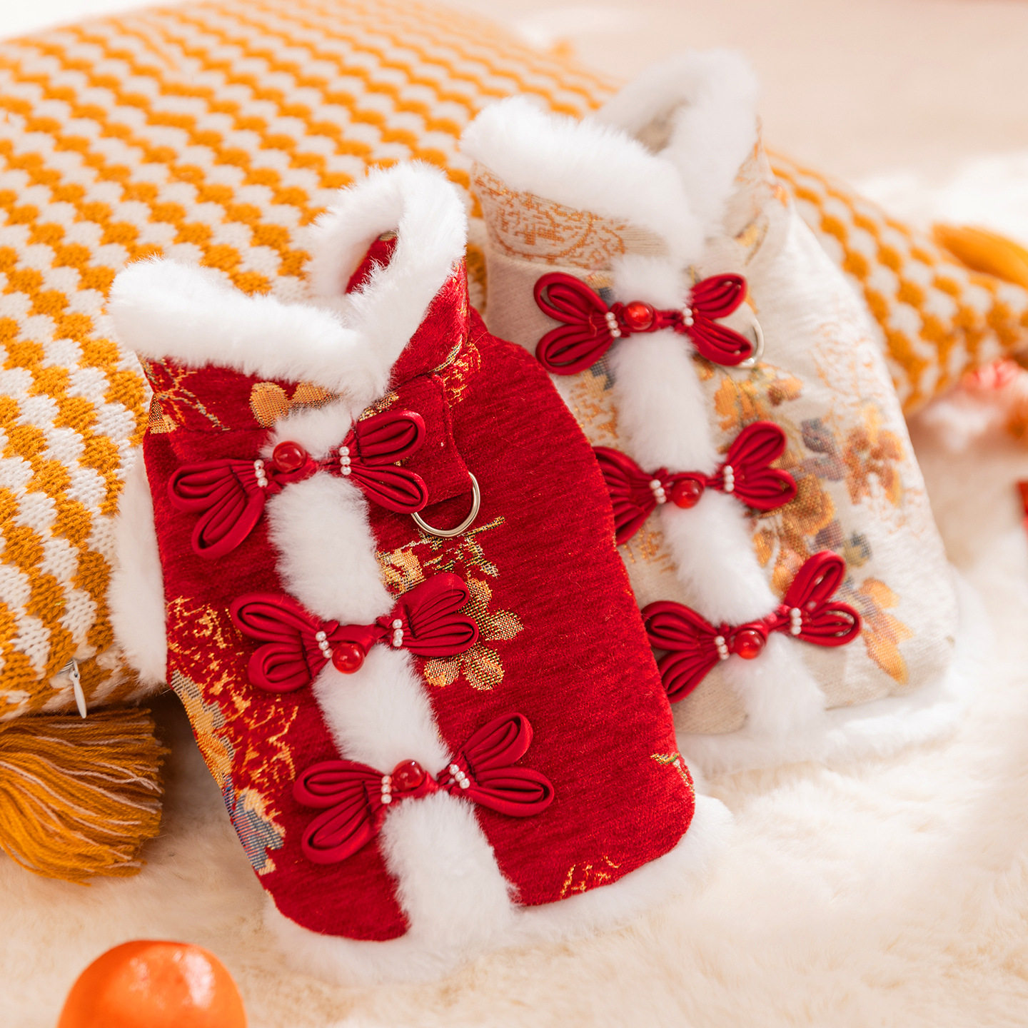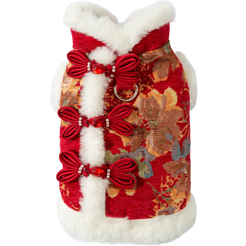 📚 狗狗衣服秋冬富贵花开新年盘扣牵引马甲保暖加厚中小型犬宠物衣服