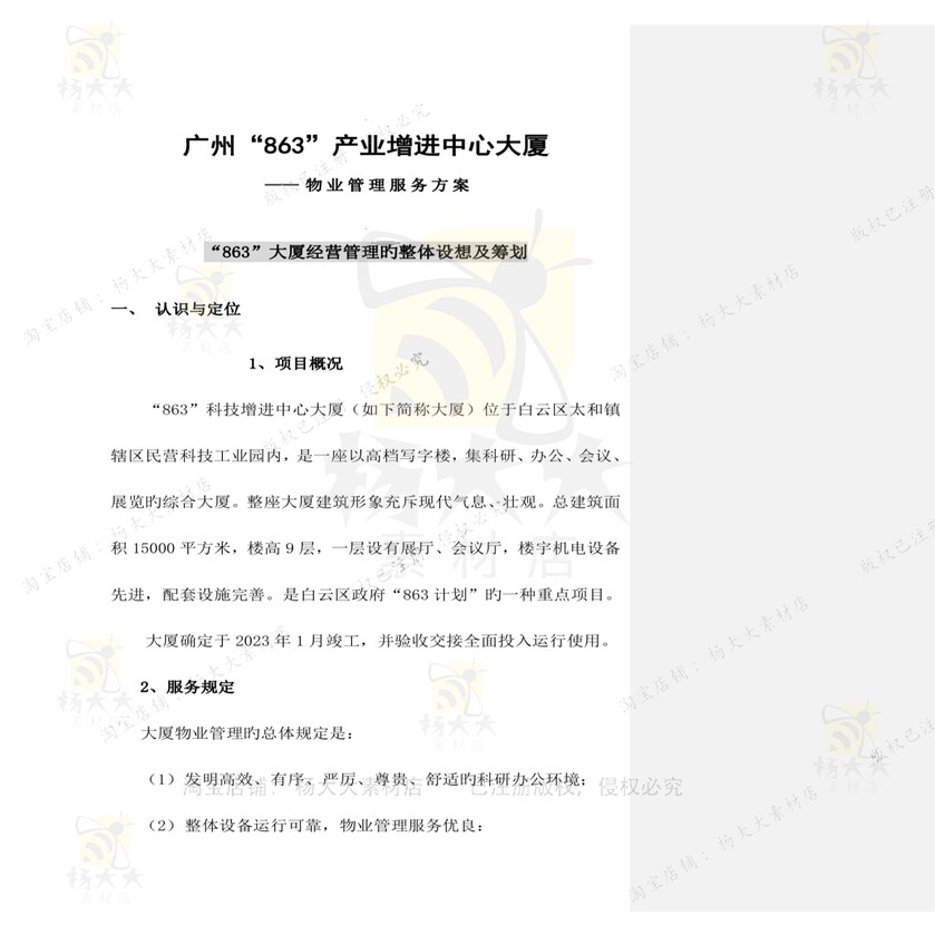 📚 大厦物业管理方案104页 物业物业管理资优质大厦文档文档料素