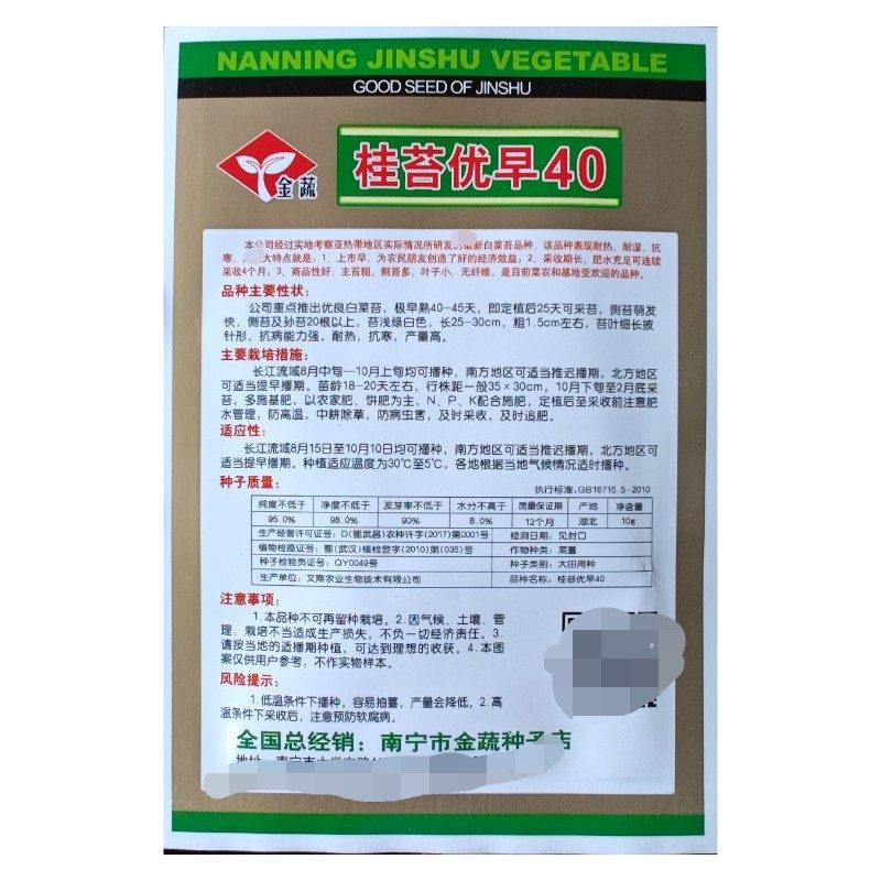 📚 10克金蔬精选杂交一代桂苔优早40白菜苔白菜心种子白菜耐热快大