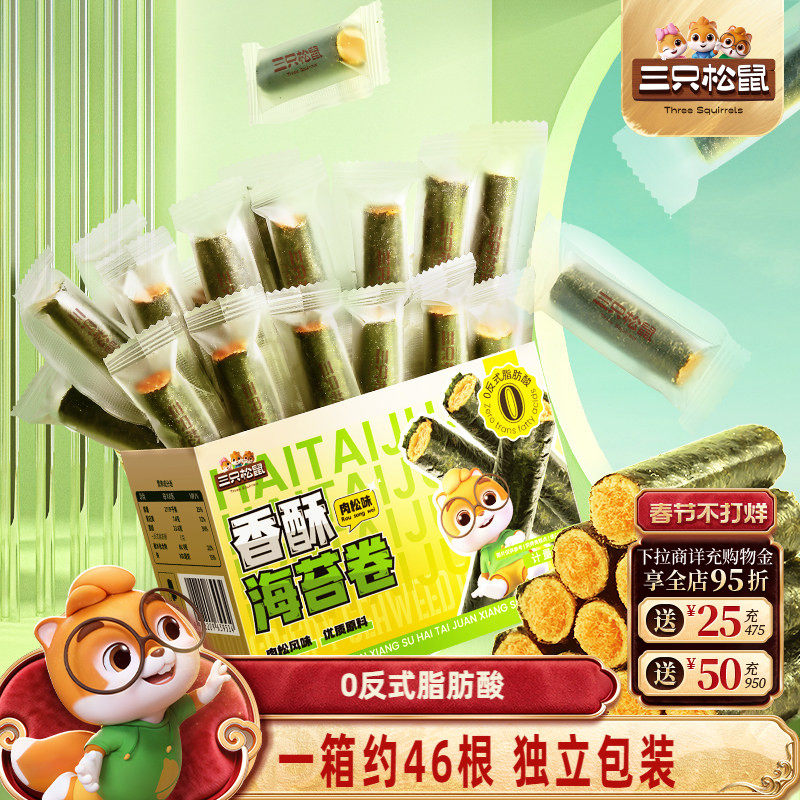 📚 三只松鼠肉松海苔卷约45根箱装夹心海苔海味蛋卷日常休闲健康零食