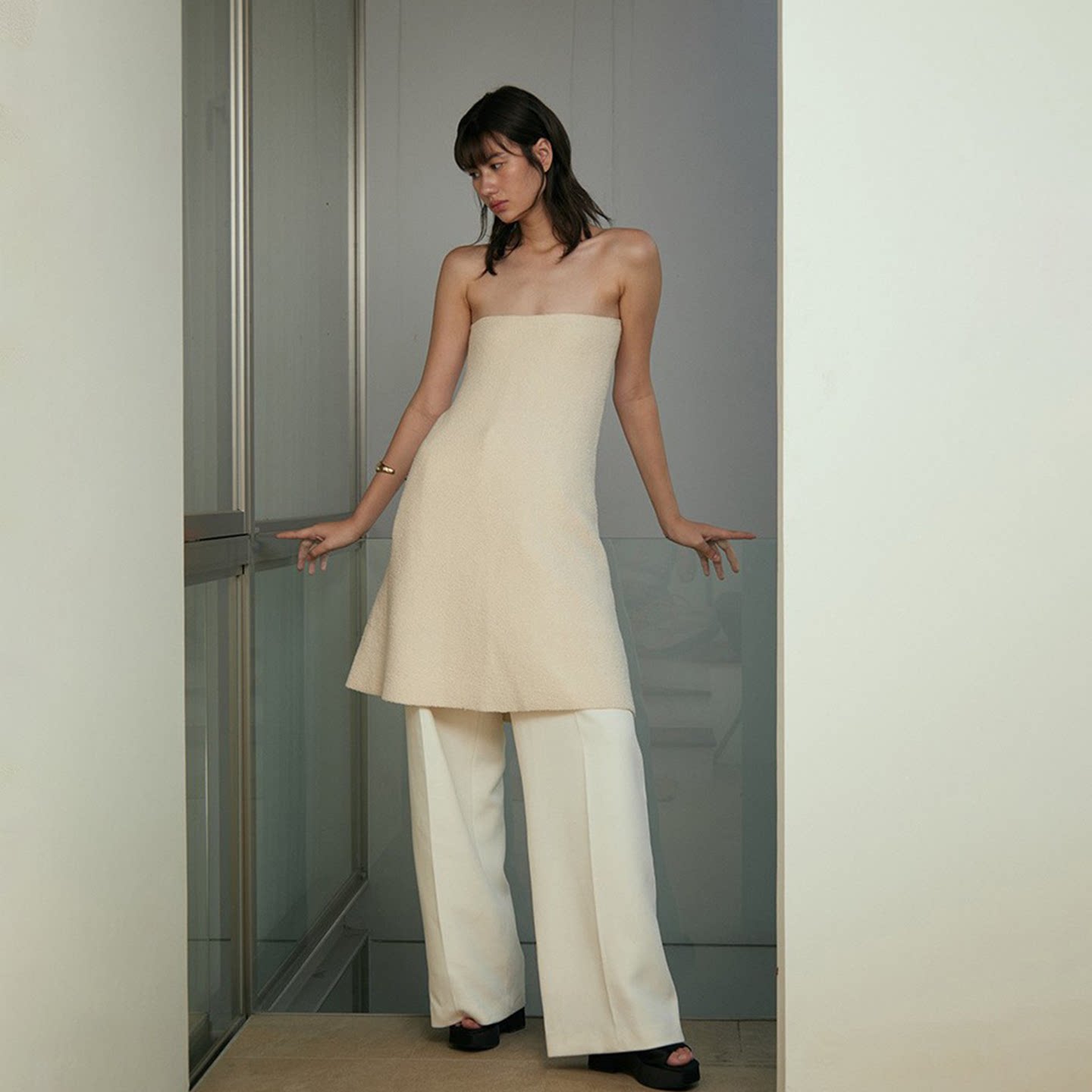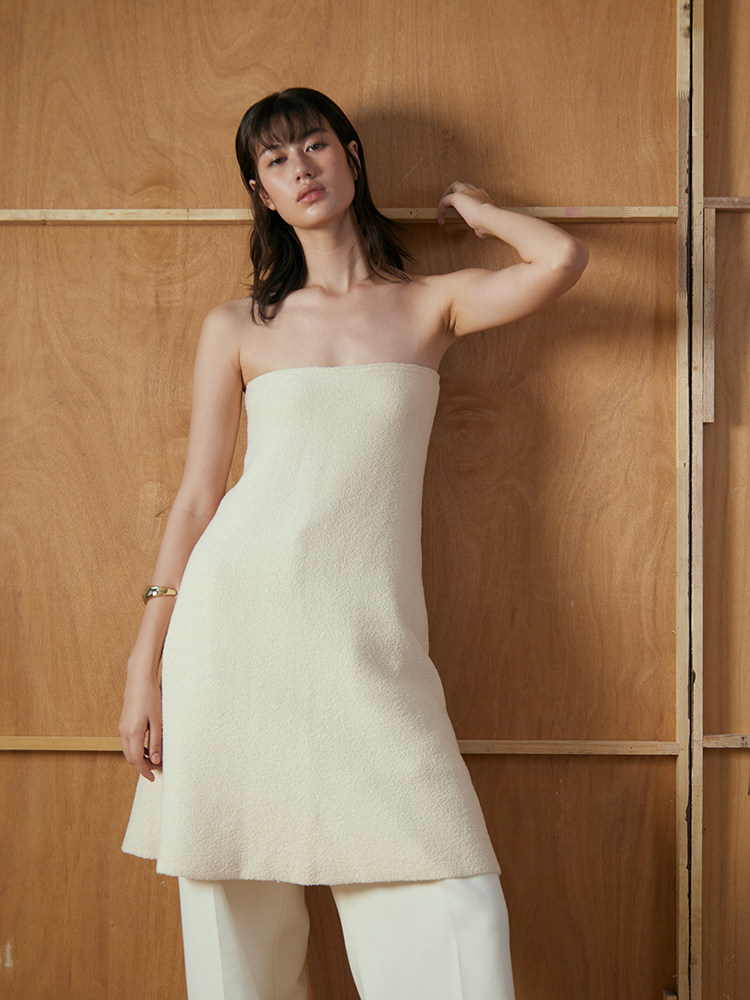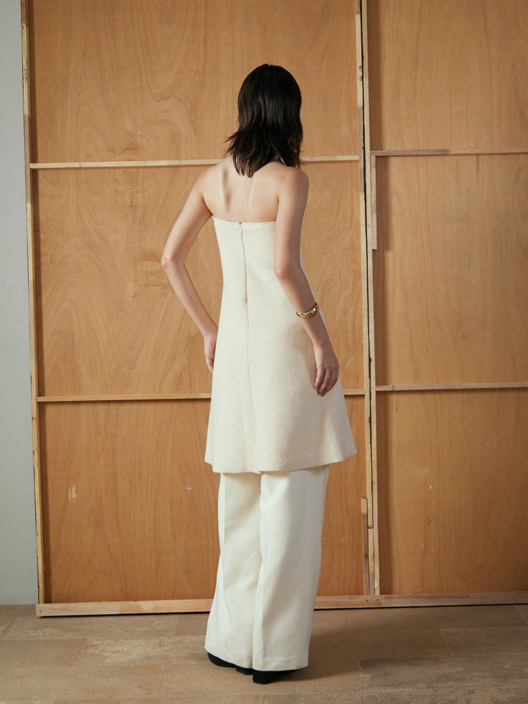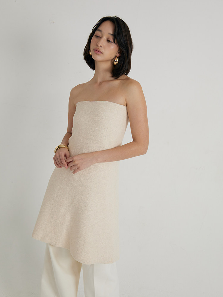 📚 OTHERSTORE 白月光 优雅知性针织抹胸上衣女米色拼缝两穿A字半裙