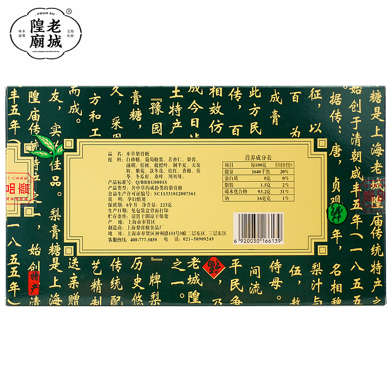 📚 上海老城隍庙特产豫园本草梨膏糖药梨膏糖朱品斋盒装梨膏糖225g