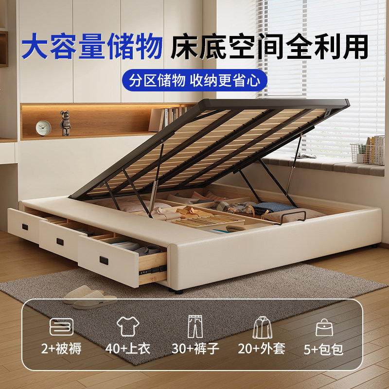 📚 无床头榻榻米床小户型钢木排骨架气压高箱储物实木床可定制尺寸