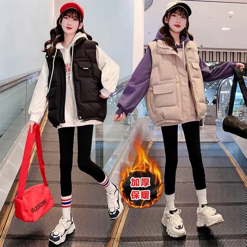 📚 女童马甲春款2024p新款洋气儿童背心大童加厚羽绒棉马夹春秋季外