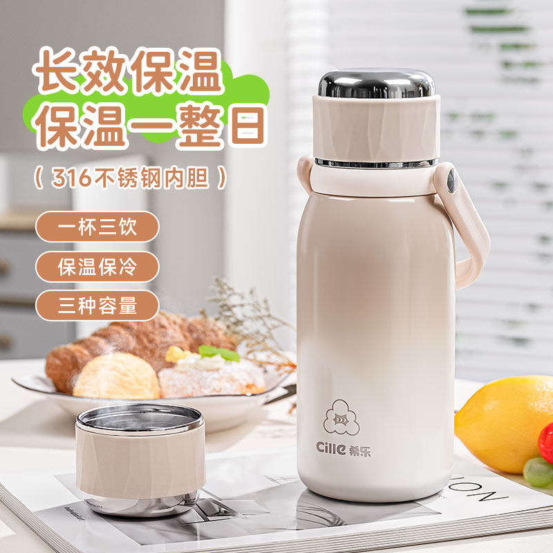 📚 希乐保温杯女生高颜值316不锈钢大容量双饮水杯学生户外便携水壶