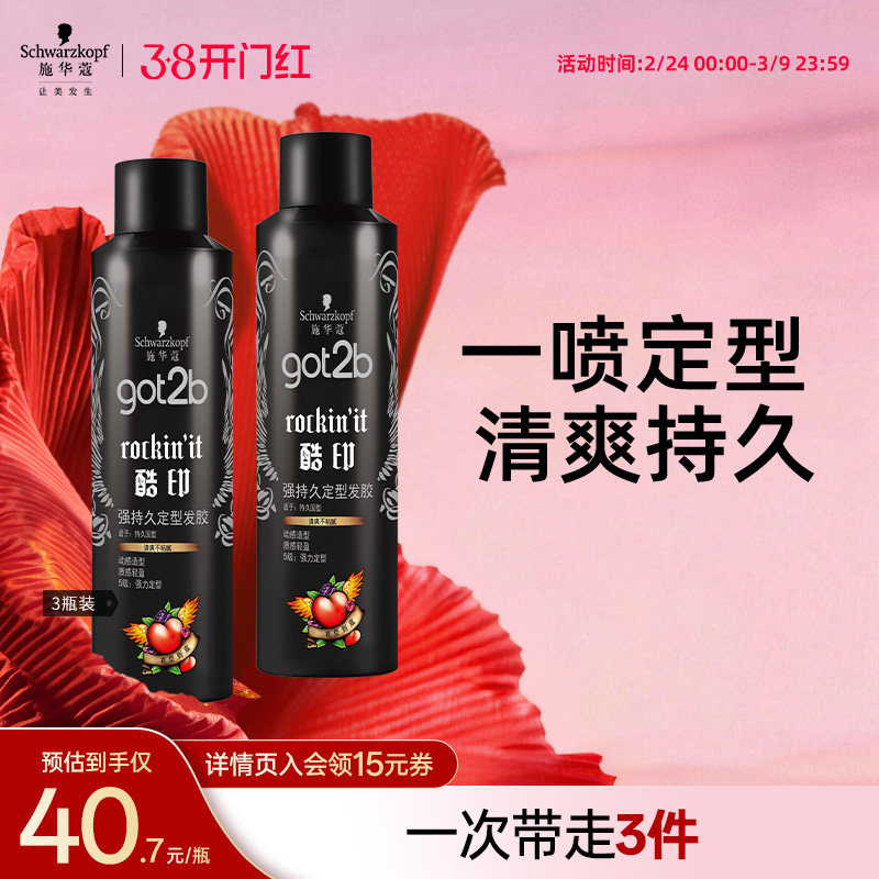 📚 施华蔻got2b酷印发胶定型喷雾强力持久清香碎发造型男士3支装