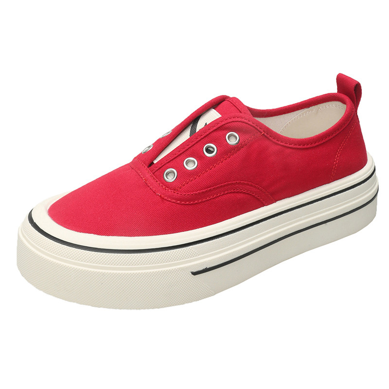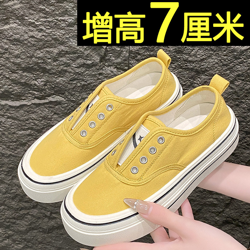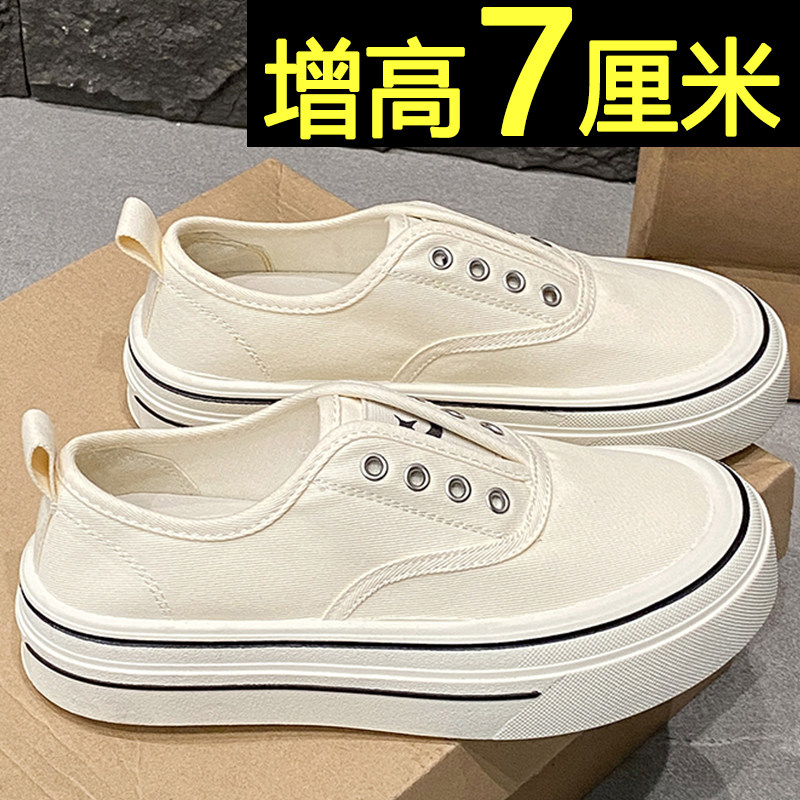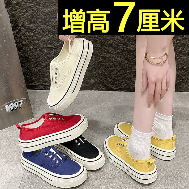 📚 内增高红色帆布鞋女2026新款夏季透气一脚蹬小白鞋厚底休闲板鞋