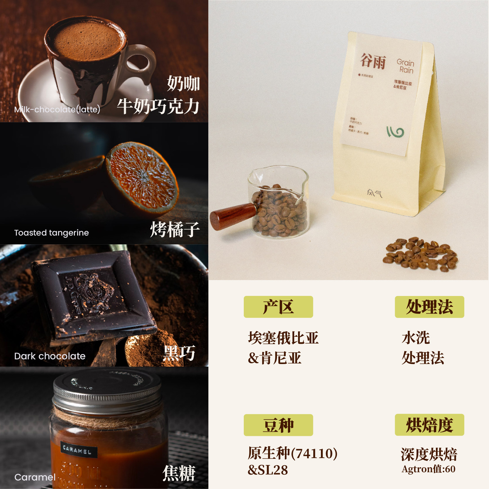 📚 风气咖啡谷雨拼配油脂瀑布埃塞肯尼亚意式深烘水洗拼配咖啡豆