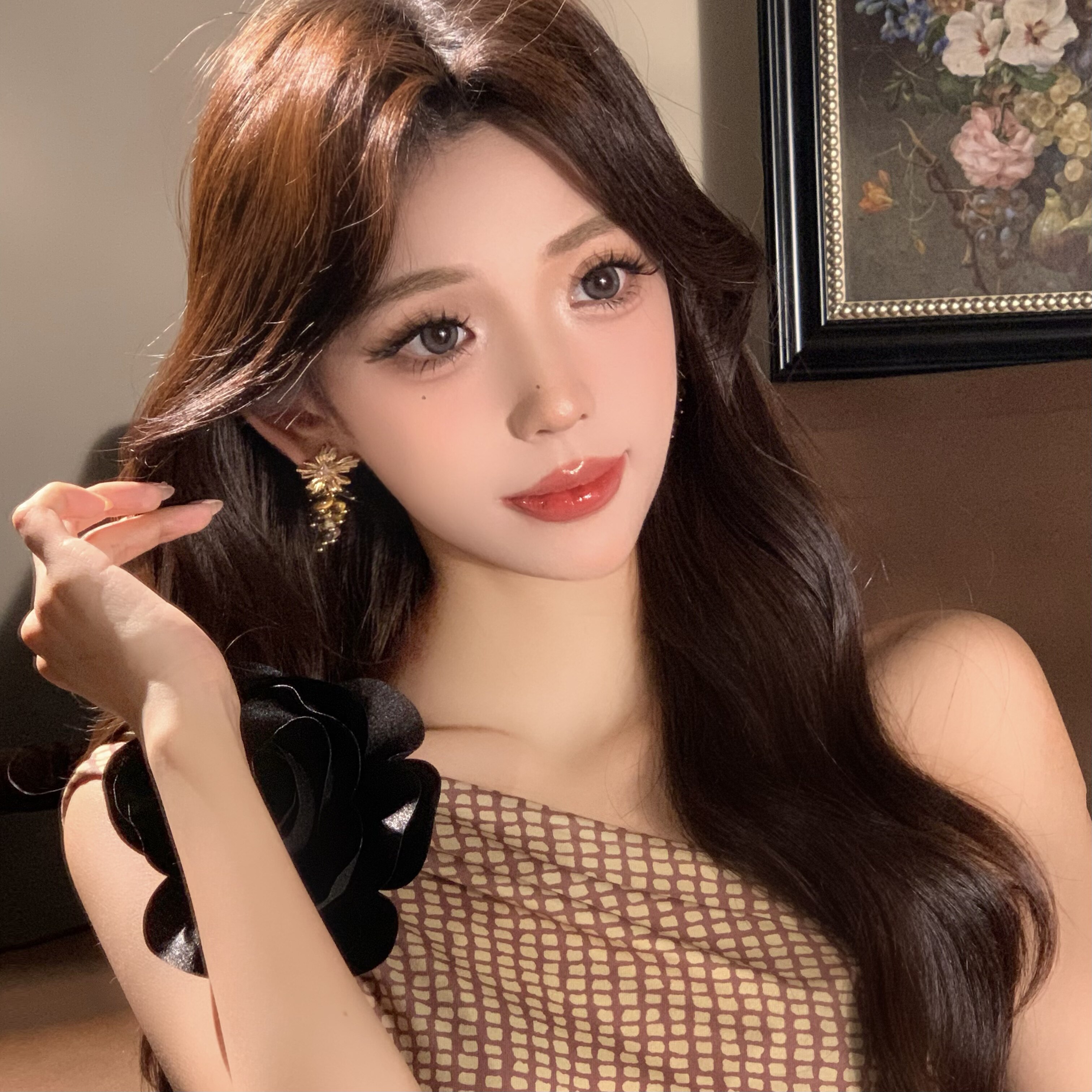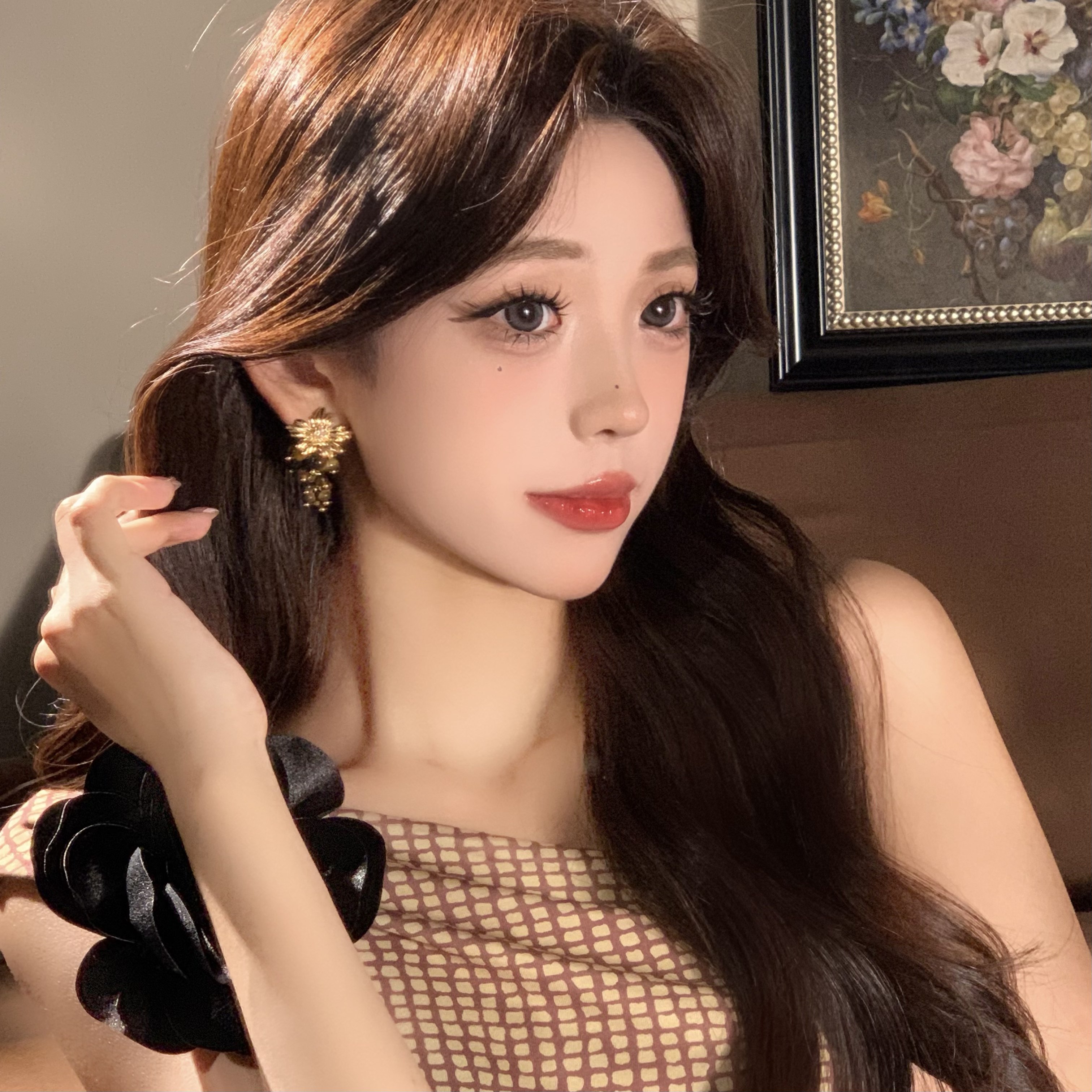 📚 新款小众设计感潮流复古亲时尚百搭金色花朵流苏耳环显瘦而是耳钉
