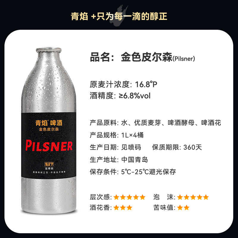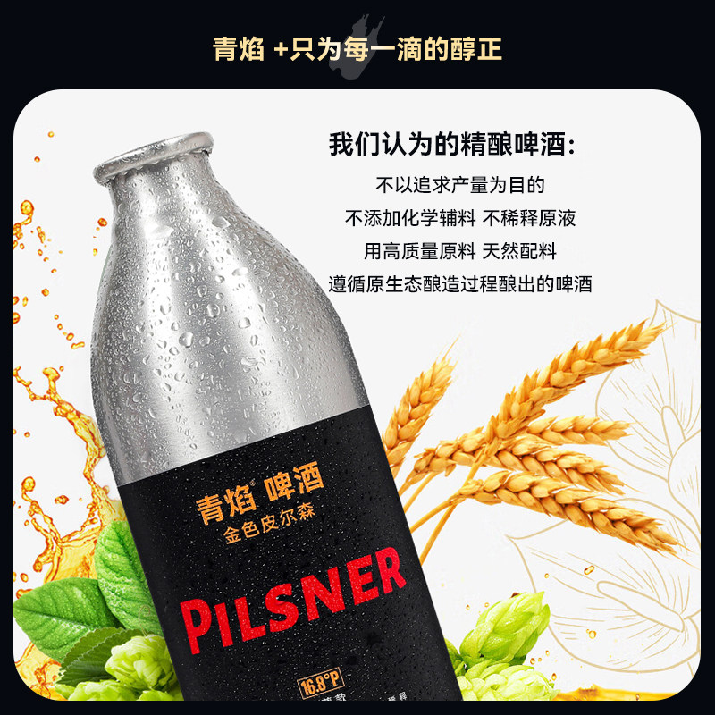 📚 青岛特产精酿原浆啤酒青焰16.8度皮尔森高浓烈性啤酒铝罐整箱礼盒