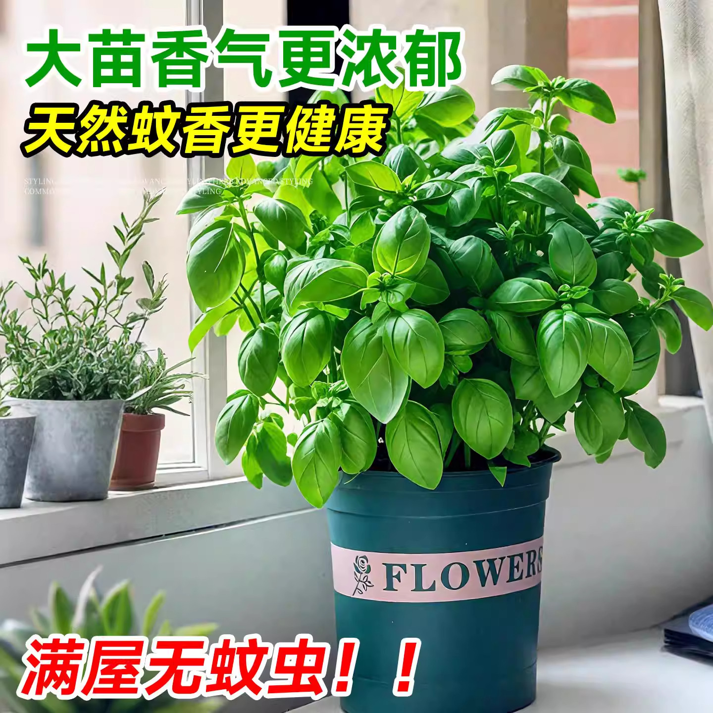 📚 罗勒盆栽可食用九层塔金不换大叶薄荷迷迭香室内绿植盆栽驱蚊植物