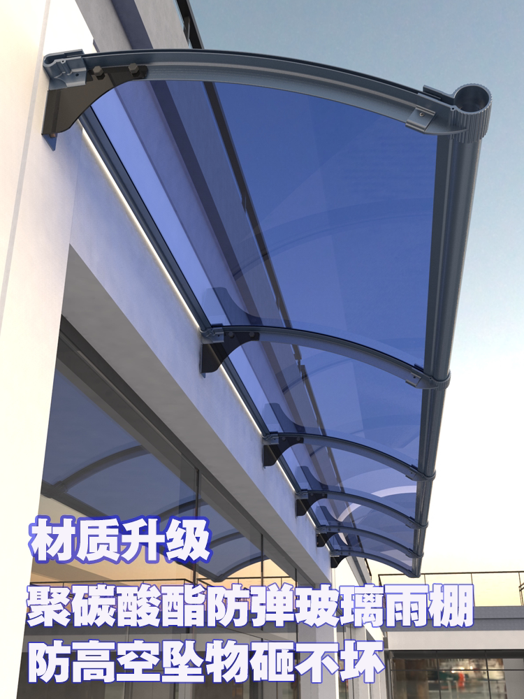 📚 铝合金雨棚带大水槽家用屋檐露台阳台窗户庭院门头遮阳雨篷棚雨搭
