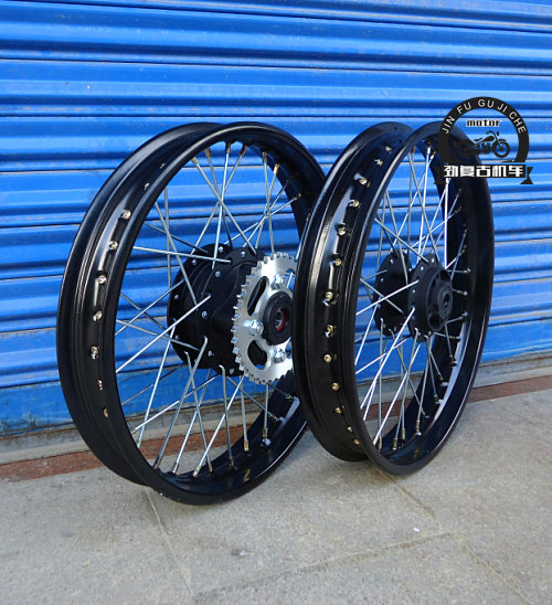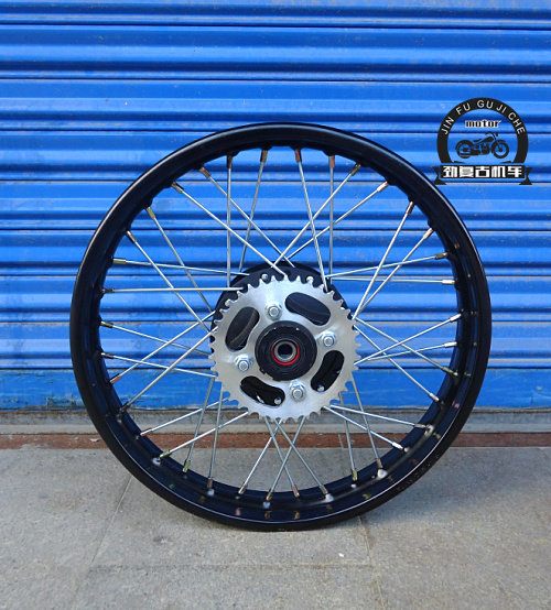 📚 复古改装16/17/18寸黑色轮圈36辐条轮毂 前碟后鼓刹gn125电镀轮毂