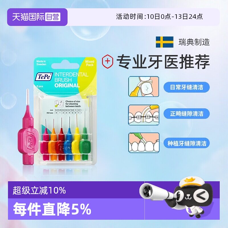 📚 【自营】TePe瑞典进口牙间刷软毛牙缝刷齿间隙刷软毛正畸矫正牙刷