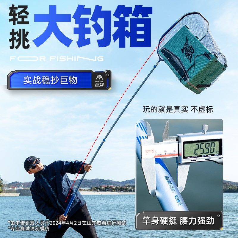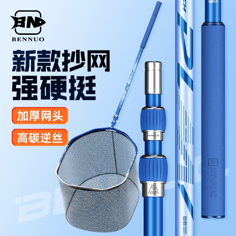 📚 本诺顽石新款大物抄网竿碳素超轻超硬便携伸缩钓鱼网兜抄鱼全
