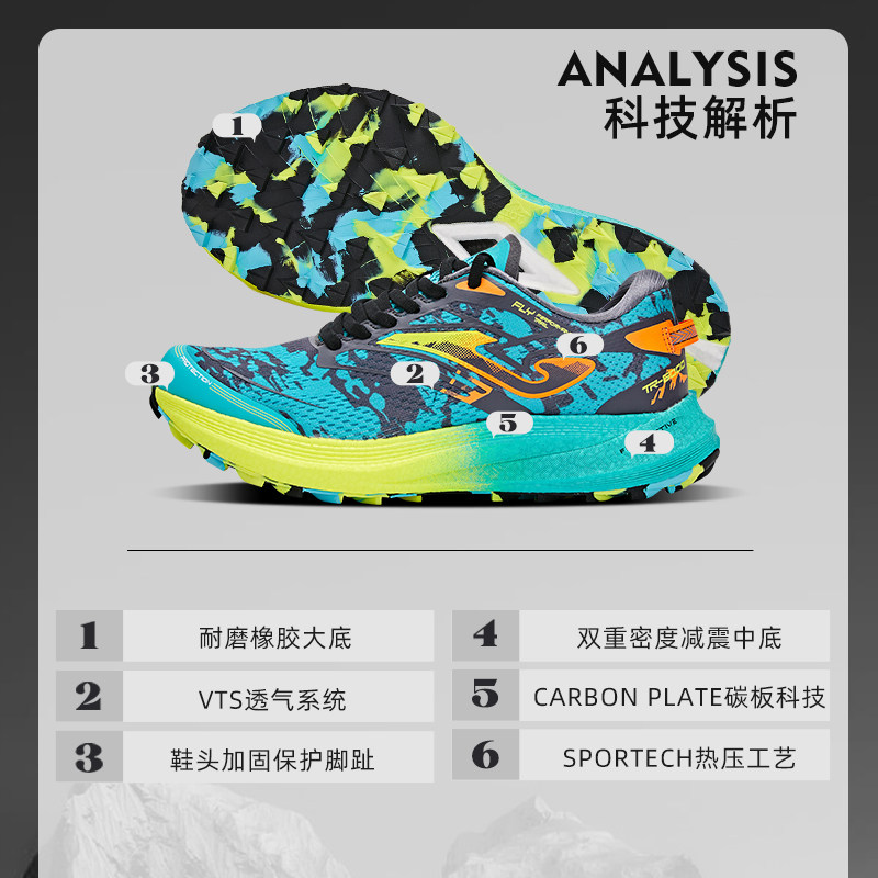 📚 Joma全碳专业越野跑鞋碳板中底回弹减震网面透气户外跑山TR-6000