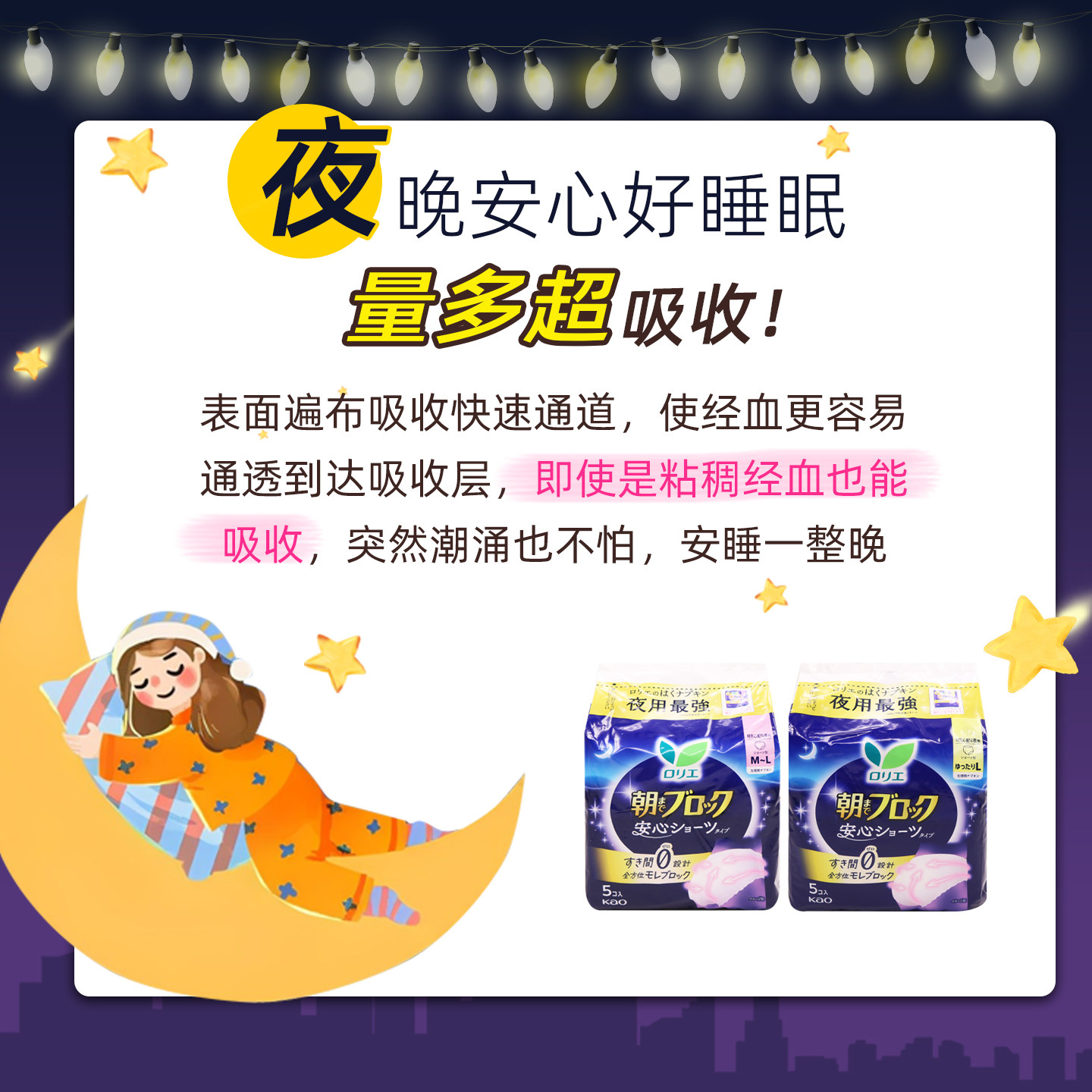 📚 日本原装进口花王超吸收特多量安心夜用安睡裤型卫生巾5枚绵柔