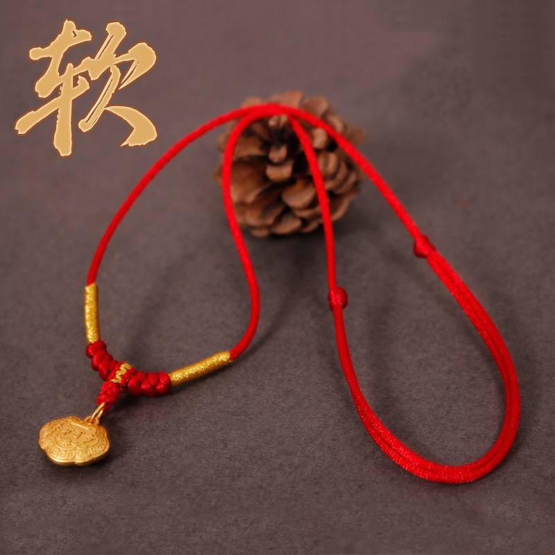 📚 宝宝小金锁吊坠手工编绳儿童平安长命锁专用红挂绳柔软调节项链绳