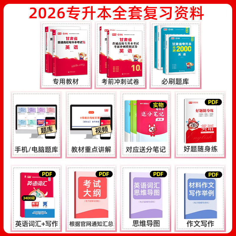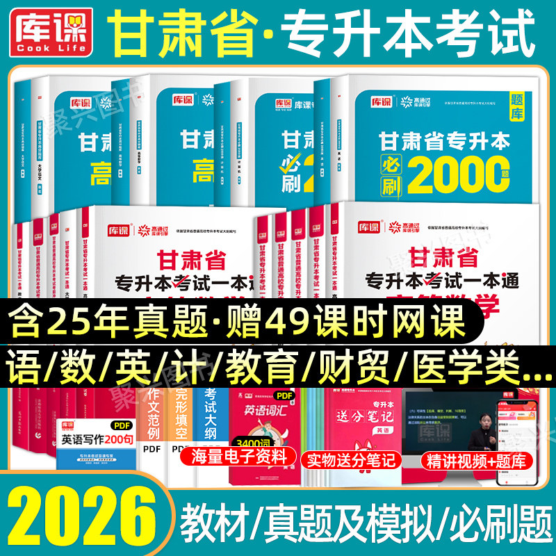 📚 库课2026甘肃专升本复习资料2025年历年真题试卷必刷题教材英语文计算机高等数学普通高校统招甘肃省库克专业课医学财贸教育类土建
