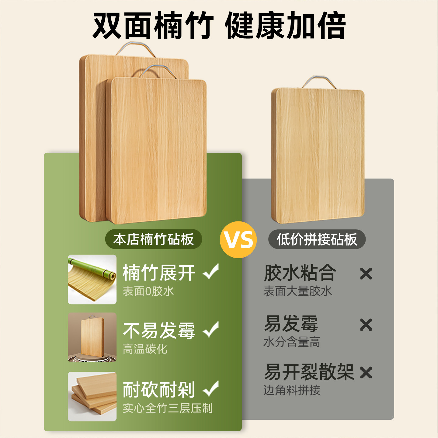 📚 百悍楠竹菜板家用砧板切菜板防霉抗菌食品级厨房专用实木案板菜墩