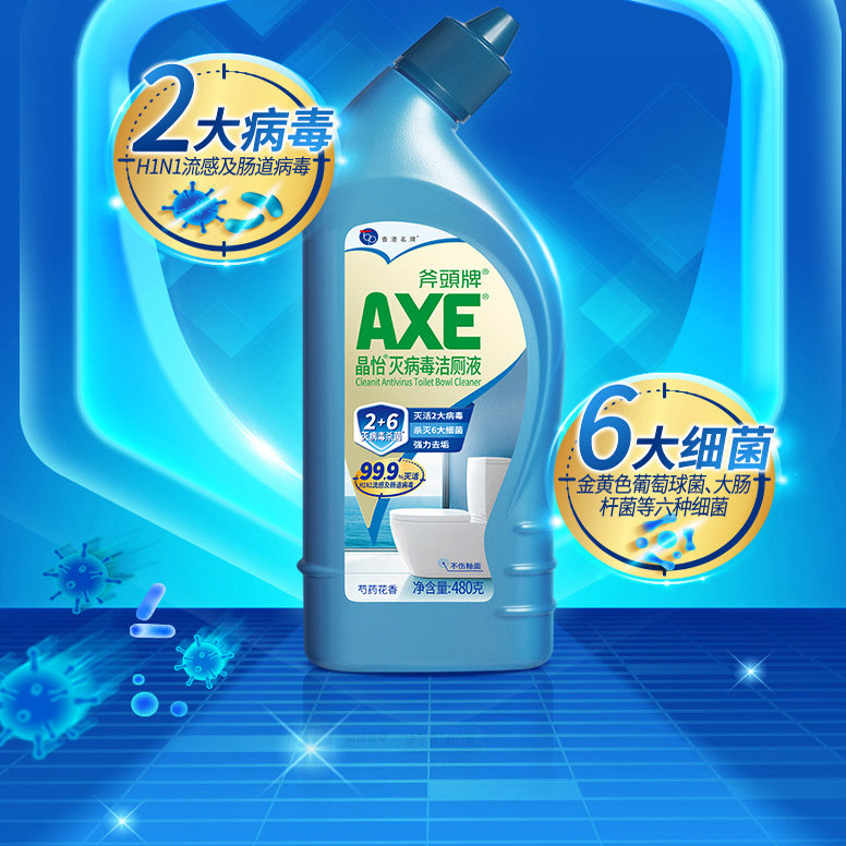 📚 【针对6种菌】AXE斧头牌H1N1灭活洁厕液强力清洁剂480g杀菌除臭B