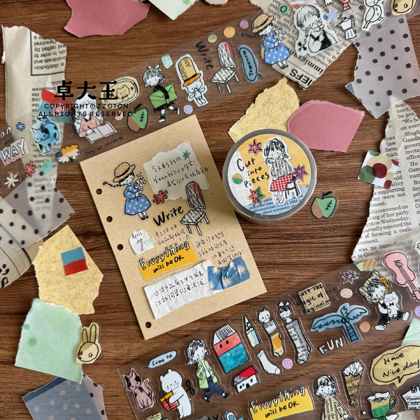 📚 卓大王胶带【阿卓剪碎片PET】拼贴风百搭好用手帐装饰复古模切ys