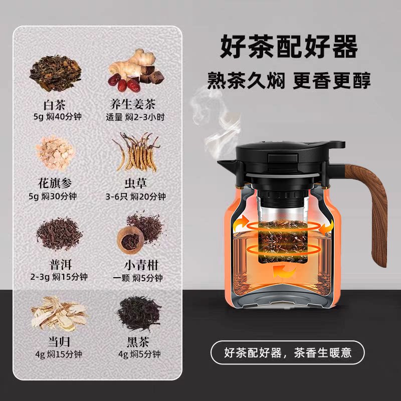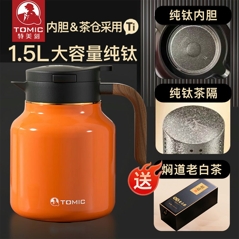 📚 特美刻Tomic纯钛内胆焖茶壶实木专业智能显温1.5L老白茶保温钛杯