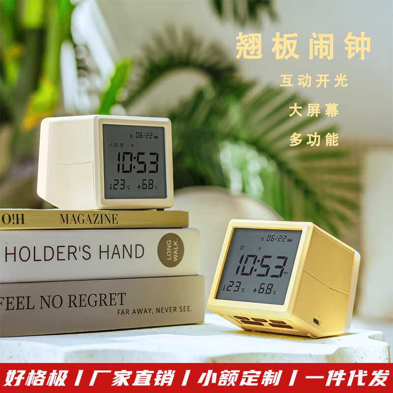 📚 新款翘板闹钟 创意多功能大屏显USB充电宿舍学生卧室桌面夜灯时钟