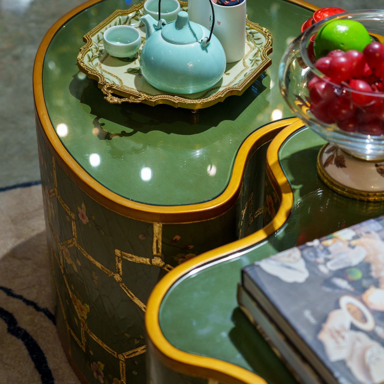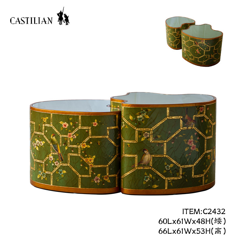 📚 卡斯特兰美式茶几手绘木质鸟语花香欧式咖啡桌客厅茶室套几C2432