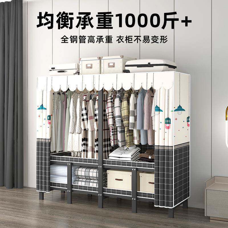 📚 衣柜家用卧免室安装折叠262简易布衣结钢柜出租房用全架实耐用衣