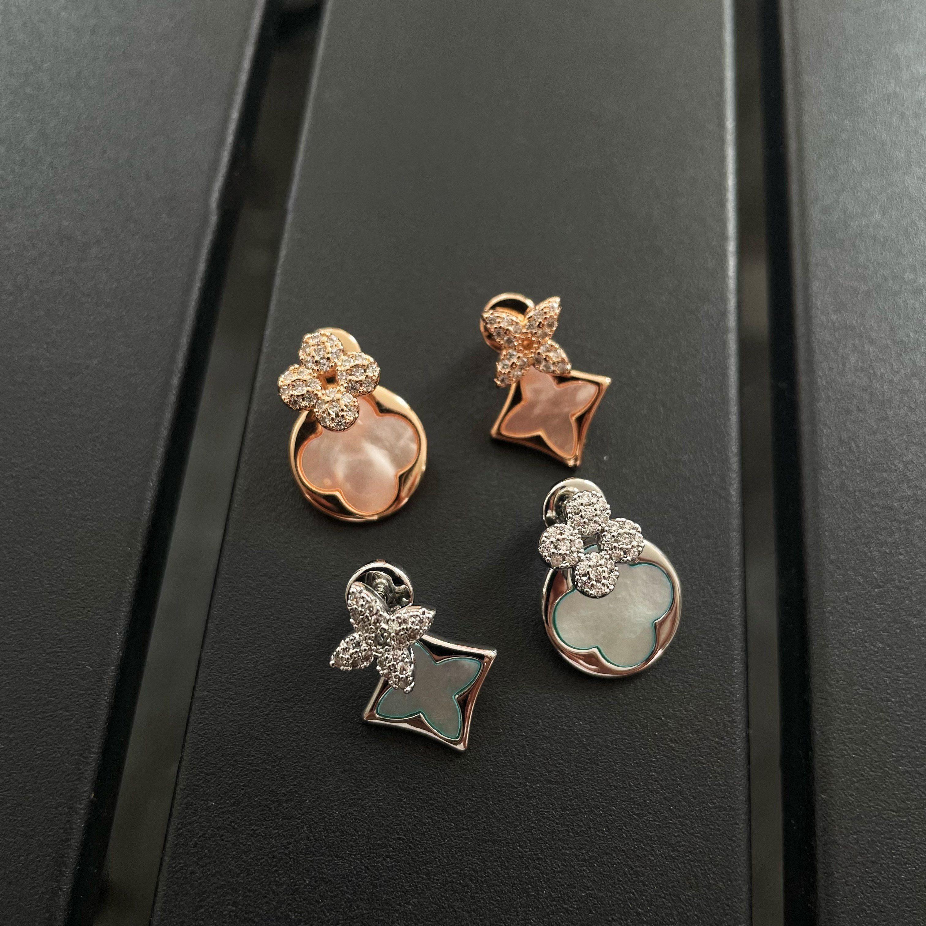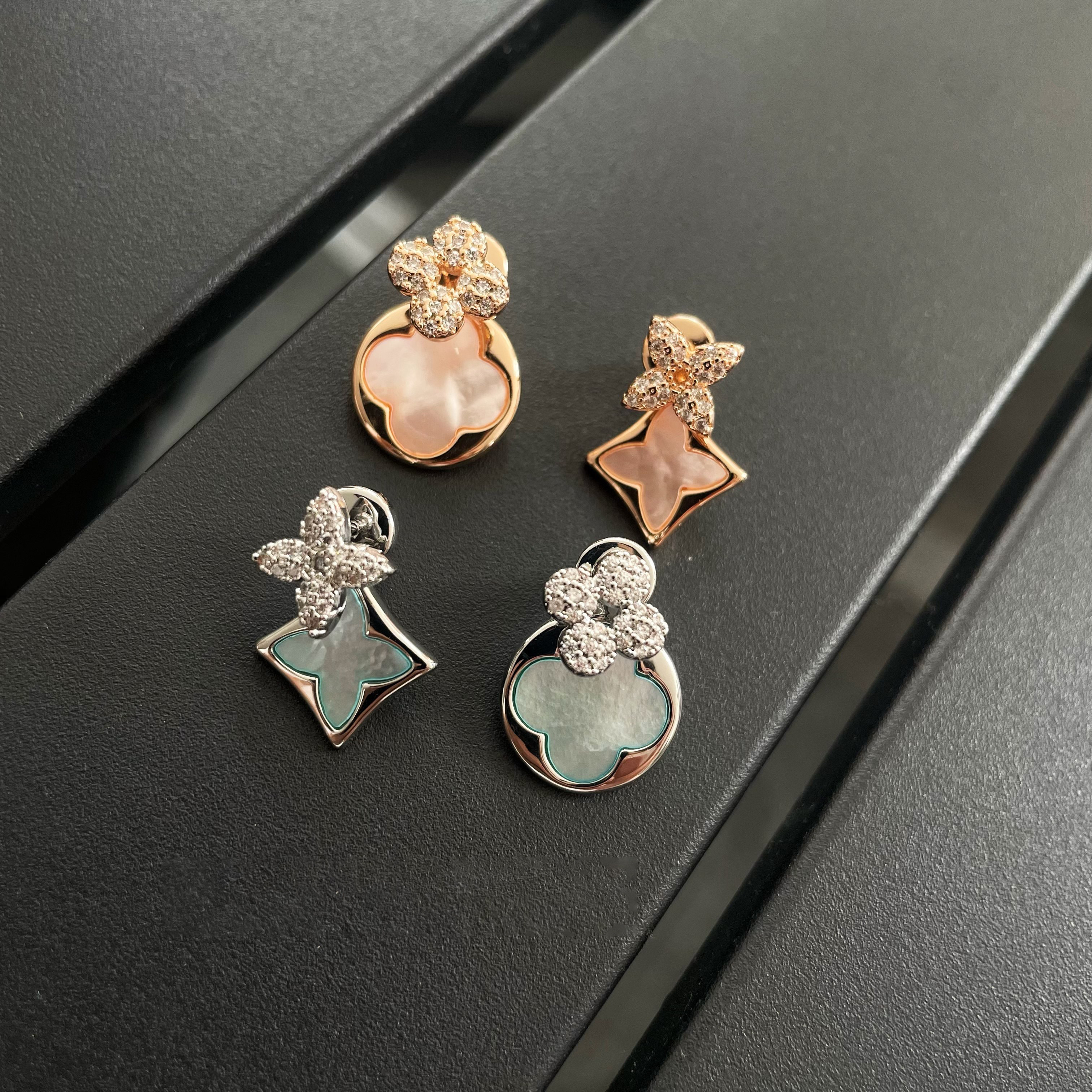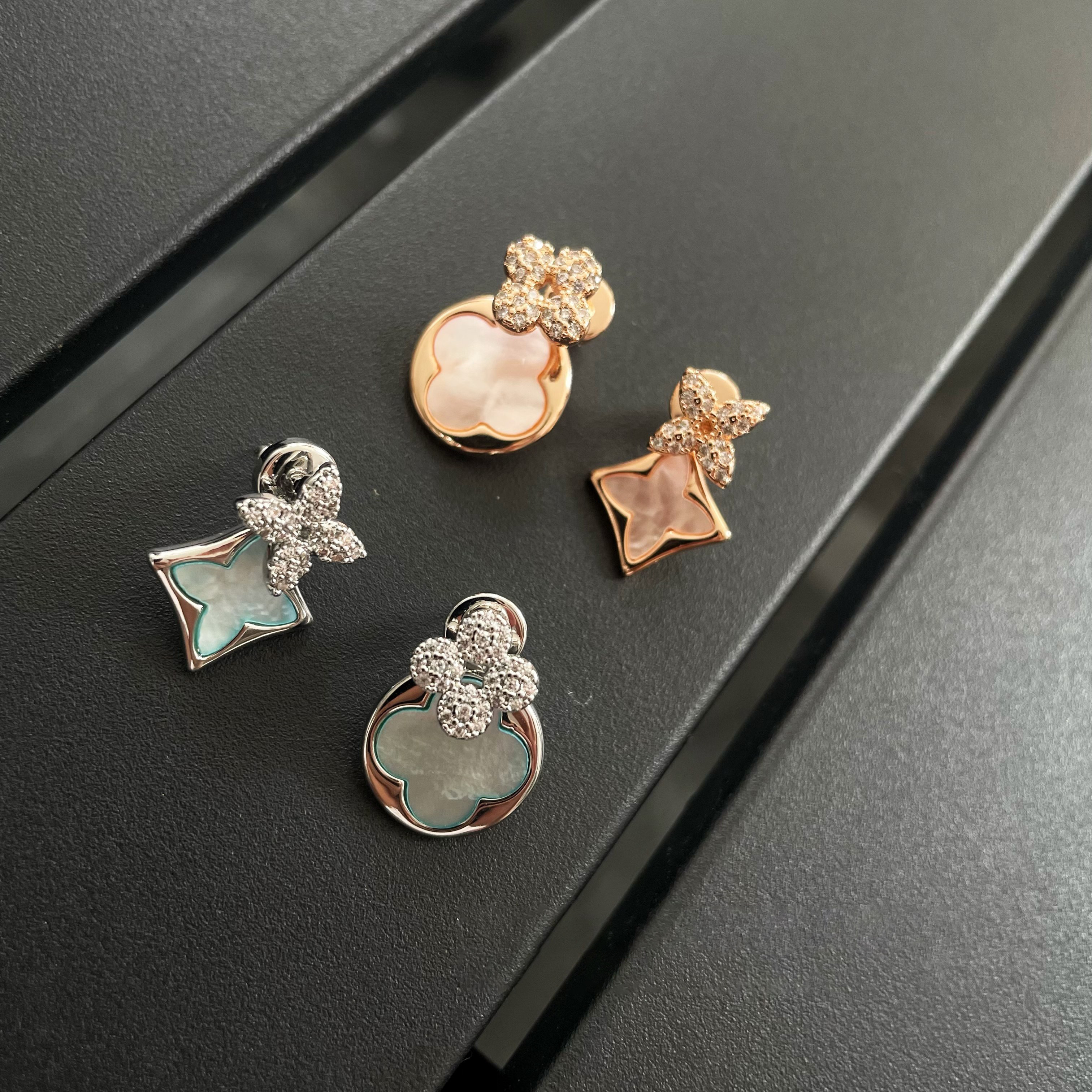 📚 巴黎【设计师】新款老花感两色AB版前后带立体微镶气质时尚耳钉