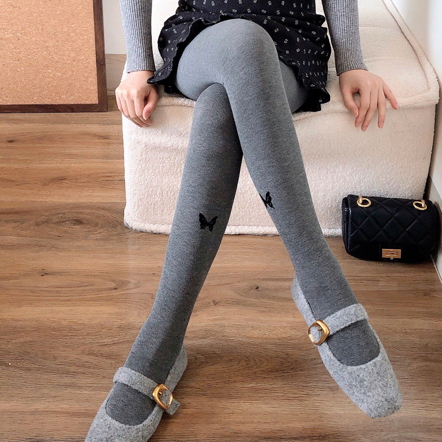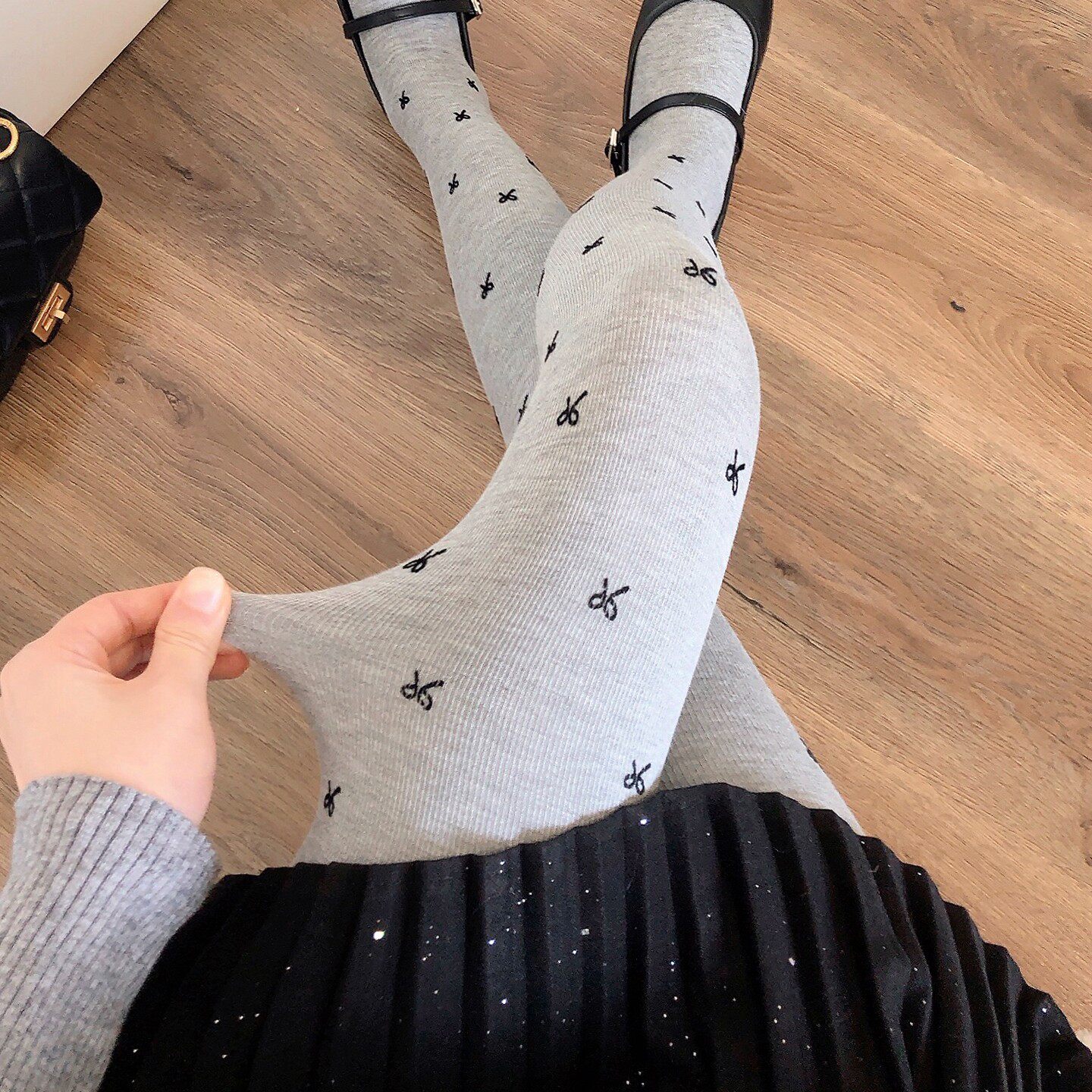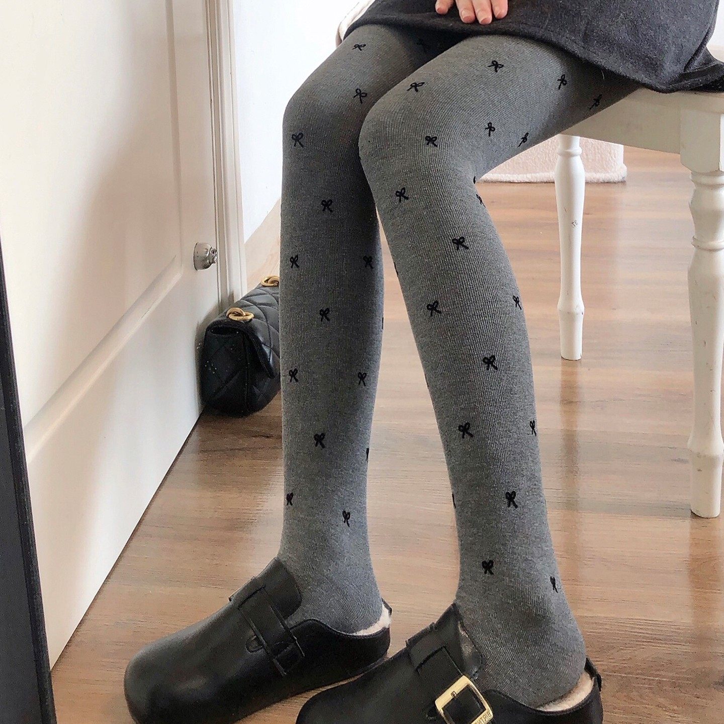📚 烟灰色打底裤女秋冬棉加厚短绒波点蝴蝶结连裤袜烟灰竖条纹美腿袜