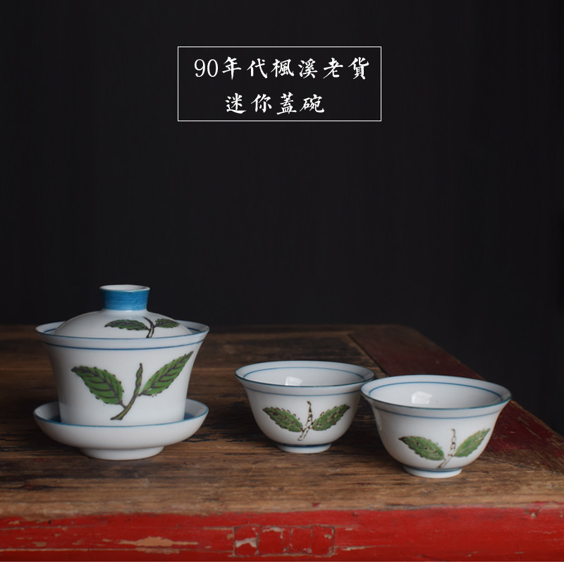 📚 潮州老茶器 功夫茶具迷你盖碗三才碗茶备 90年代枫溪瓷厂库存老货