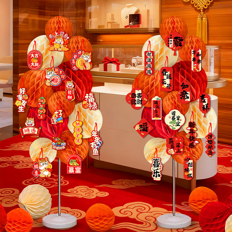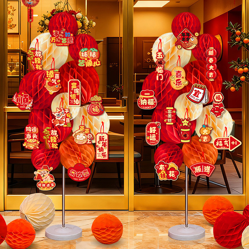 📚 2026新年装饰落地摆件商场门店春节氛围布置招财灯笼福字店铺美陈