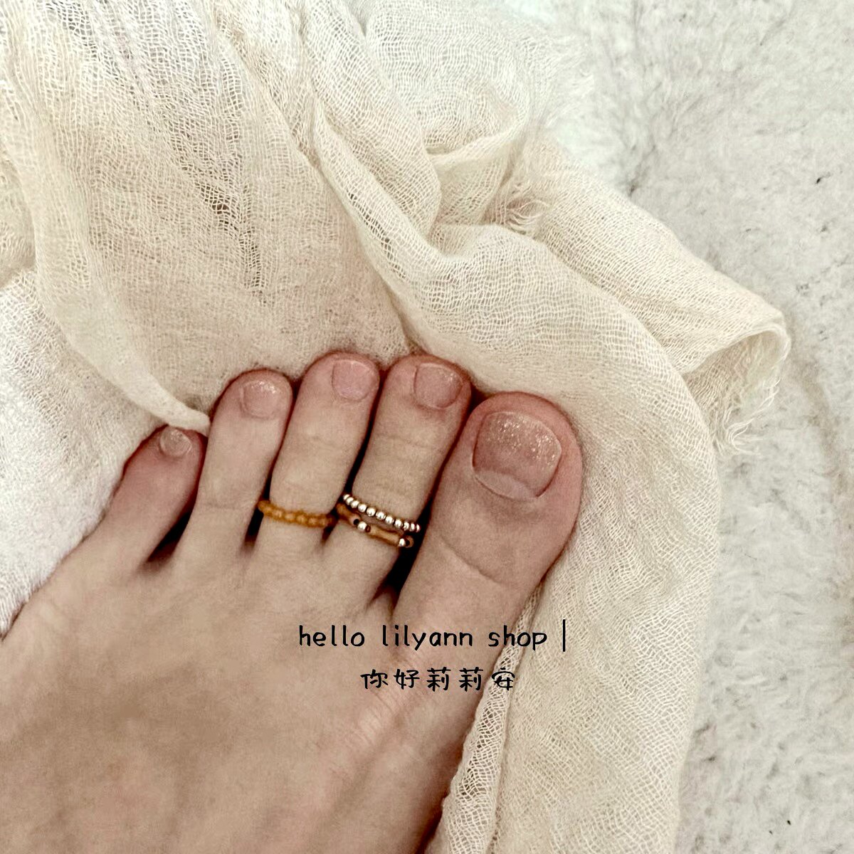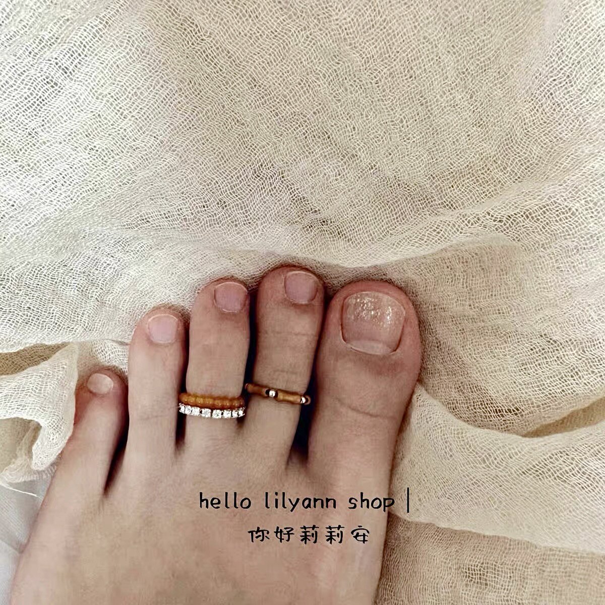 📚 不硌脚可沾水hello原创设计脚戒指天然黄玉竹节美产14k包金有弹力