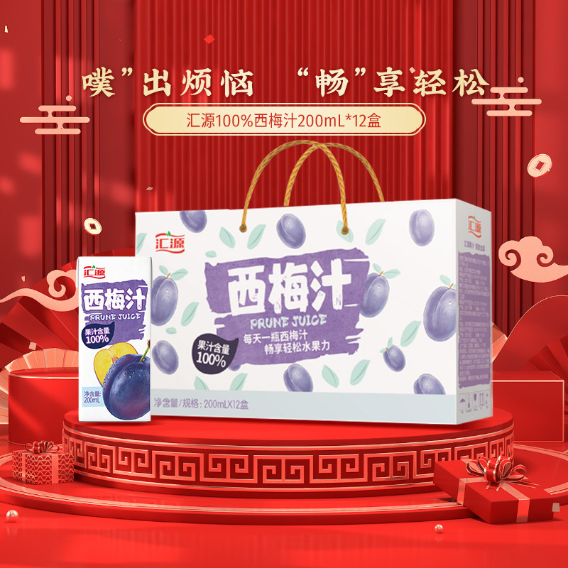 📚 汇源100%果味饮料西梅汁200ml*12盒果汁浓缩果蔬汁整箱装