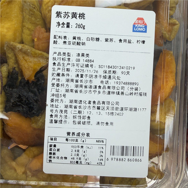 📚 湖南长沙五一广场国金街印象汇金粒门紫苏黄桃干260克一盒